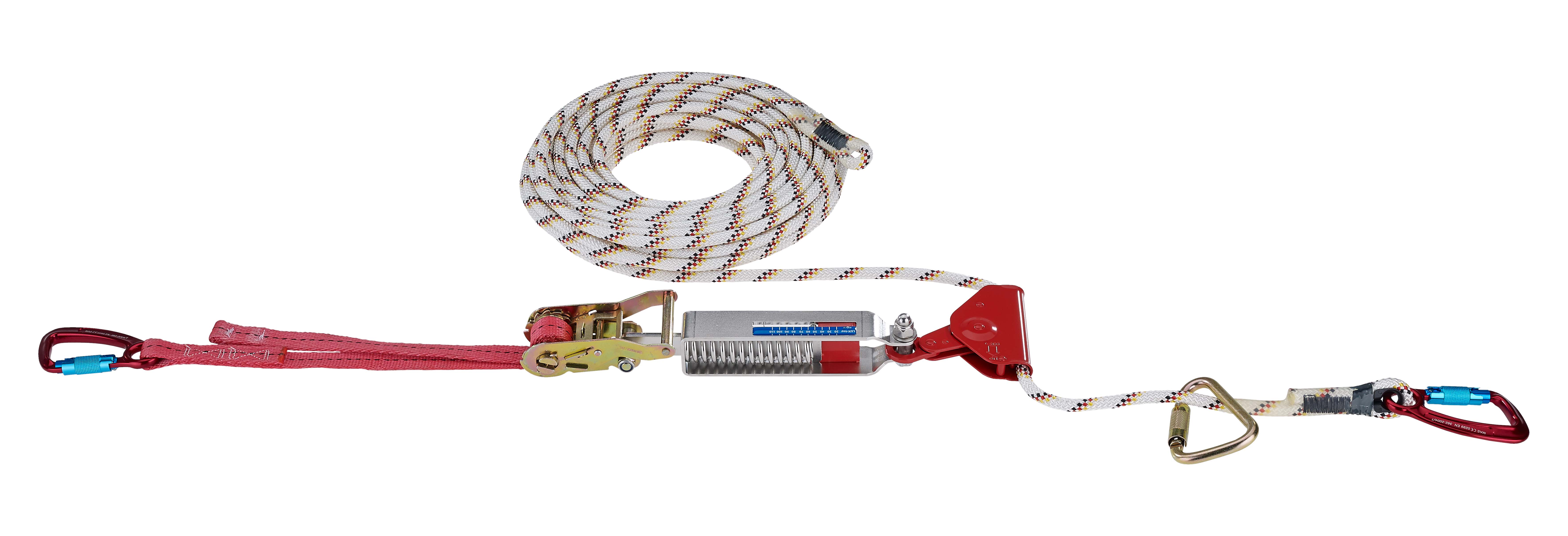 horizontale bewegliche Führungals Anschlagseinrichtung,EN 795:2012-07 (D), Typ CCEN/TS 16415:2013 (D), Typ CTyp MultiLine SK 12, 40 m-Haken MAS 52 am Seilanfang-mit Seilkürzer SK 12 -lose beiliegender Haken BS 25TW-Seilkrafterhalter
