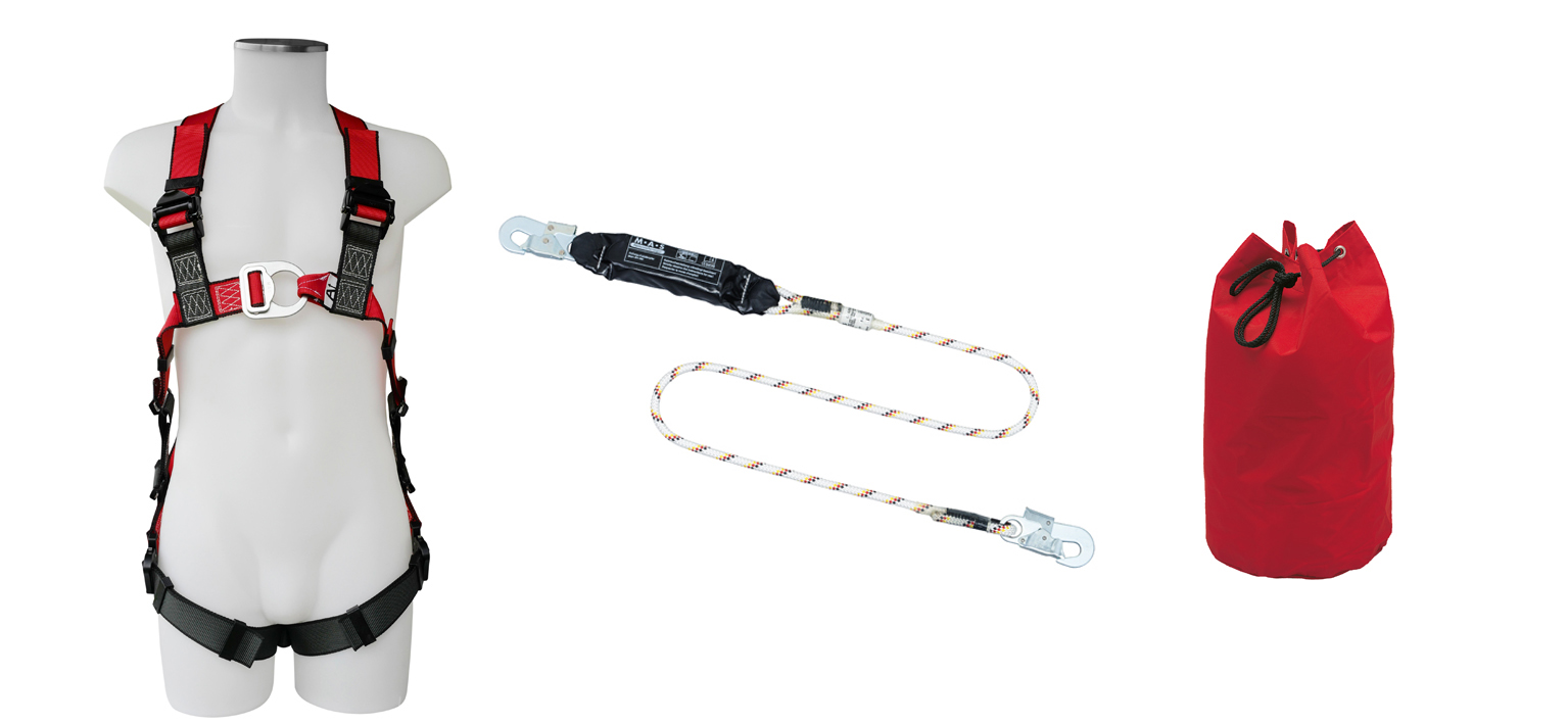 Sicherheitsset bestehend aus:1x Auffanggurt MAS 40, Quick (1041010)1x BFD-VB Typ 5-2m (674002) 1x Gerätebeutel, klein (51214)