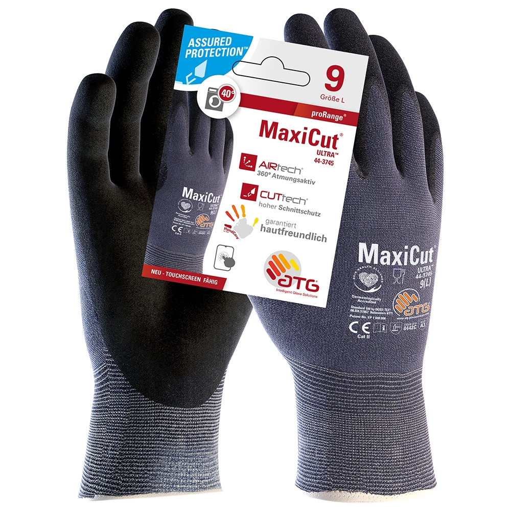 MaxiCut® Ultra™ Nylon-Strickhandschuhe (44-3745 HCT), SB-Verpackung - blau/schwarz - Größe: 7 ist verfügbar zum Kauf in Stufen von 12