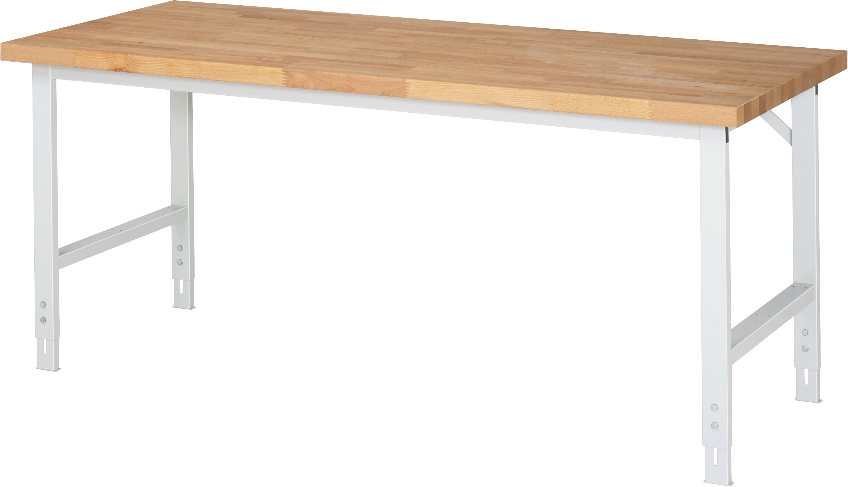 Arbeitsbank Serie Tom B2000 x T700 x H780-1100 mm Buche-Furnier-Platte 40 mm. Gestell 60x30 mm, Arbeitshöhe verstellbar. Pulverbeschichtung Flächenlast max. 500 kg Lieferung zerlegt Qualitätsgarantie 5 Jahre Made in Germany