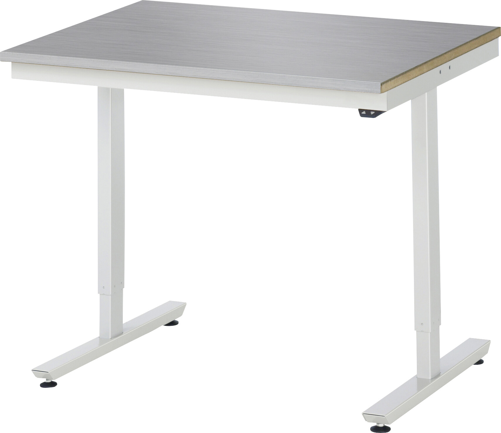 Arbeitstisch Serie adlatus 150 B1000 x T800 x H720-1120 mm Platte mit Edelstahlblechbelag 25 mm. Elektrische Verstellung mittels 2 Hubsäulen durch integrierten Linearantrieb. Pulverbeschichtung Flächenlast max. 150 kg Lieferung komplett montiert Qualitätsgarantie 5 Jahre Made in Germany