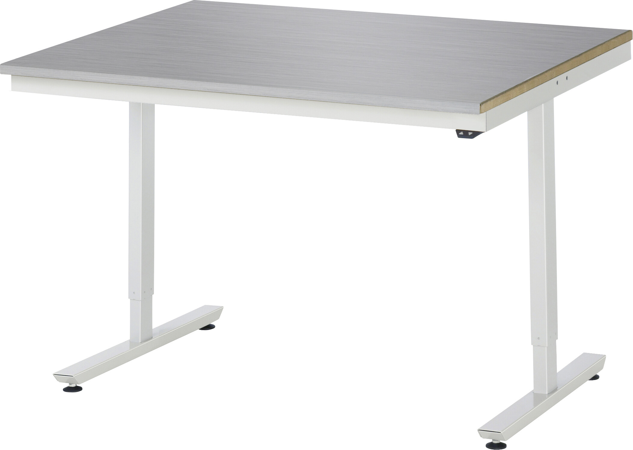 Arbeitstisch Serie adlatus 150 B1250 x T1000 x H720-1120 mm Platte mit Edelstahlblechbelag 25 mm. Elektrische Verstellung mittels 2 Hubsäulen durch integrierten Linearantrieb. Pulverbeschichtung Flächenlast max. 150 kg Lieferung komplett montiert Qualitätsgarantie 5 Jahre Made in Germany