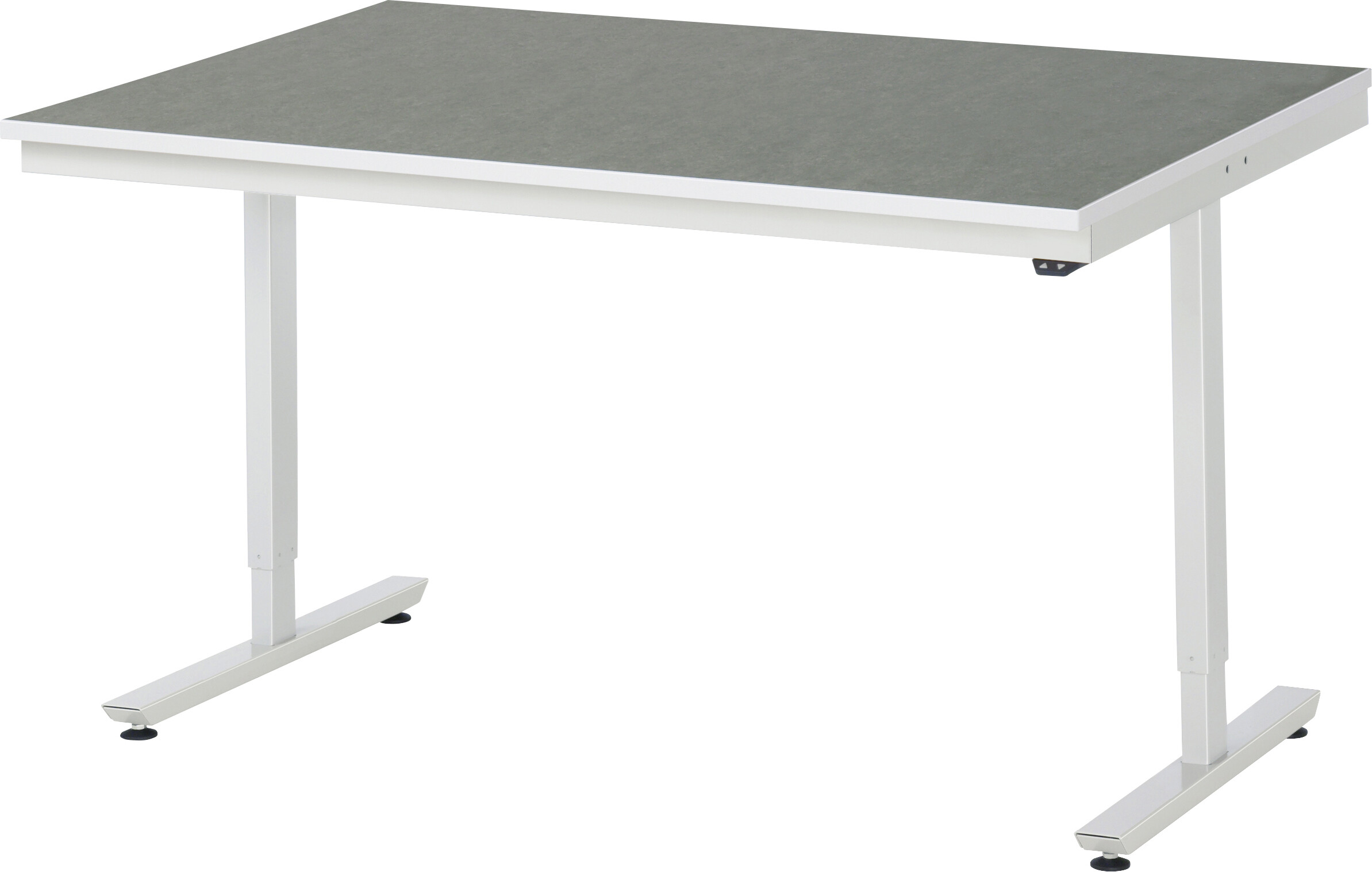 Arbeitstisch Serie adlatus 150 B1500 x T1000 x H720-1120 mm Platte mit Linoleumbelag 25 mm. Elektrische Verstellung mittels 2 Hubsäulen durch integrierten Linearantrieb. Pulverbeschichtung Flächenlast max. 150 kg Lieferung komplett montiert Qualitätsgarantie 5 Jahre Made in Germany
