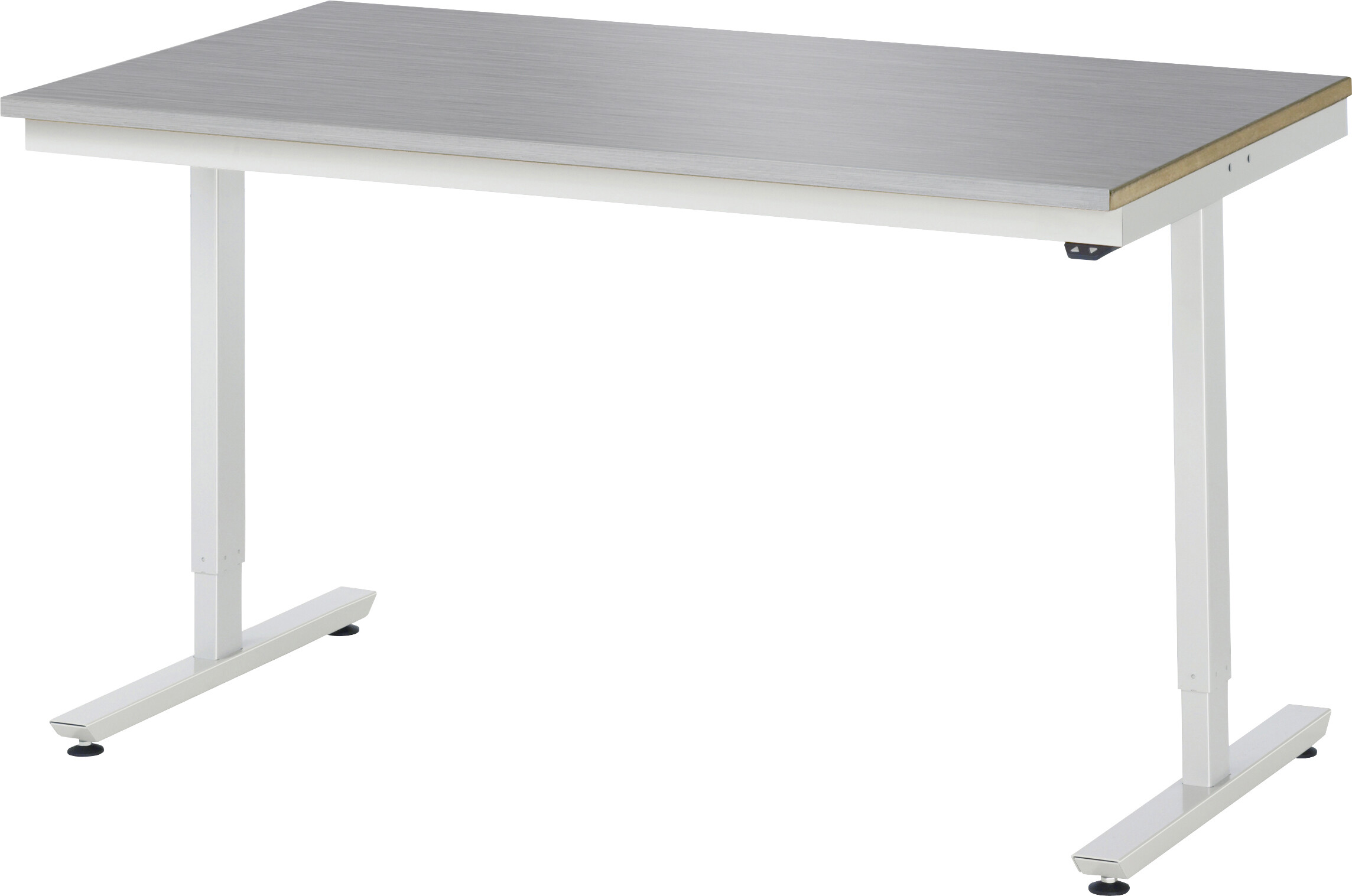 Arbeitstisch Serie adlatus 150 B1500 x T800 x H720-1120 mm Platte mit Edelstahlblechbelag 25 mm. Elektrische Verstellung mittels 2 Hubsäulen durch integrierten Linearantrieb. Pulverbeschichtung Flächenlast max. 150 kg Lieferung komplett montiert Qualitätsgarantie 5 Jahre Made in Germany