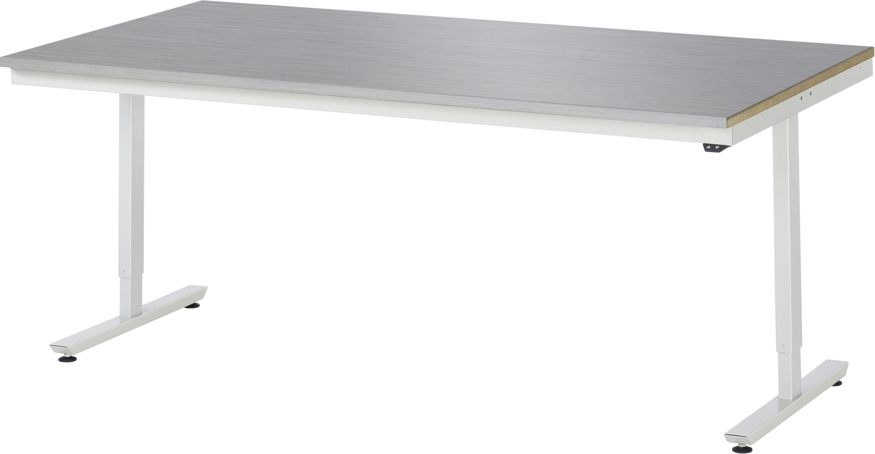 Arbeitstisch Serie adlatus 150 B2000 x T1000 x H720-1120 mm Platte mit Edelstahlblechbelag 25 mm. Elektrische Verstellung mittels 2 Hubsäulen durch integrierten Linearantrieb. Pulverbeschichtung Flächenlast max. 150 kg Lieferung komplett montiert Qualitätsgarantie 5 Jahre Made in Germany