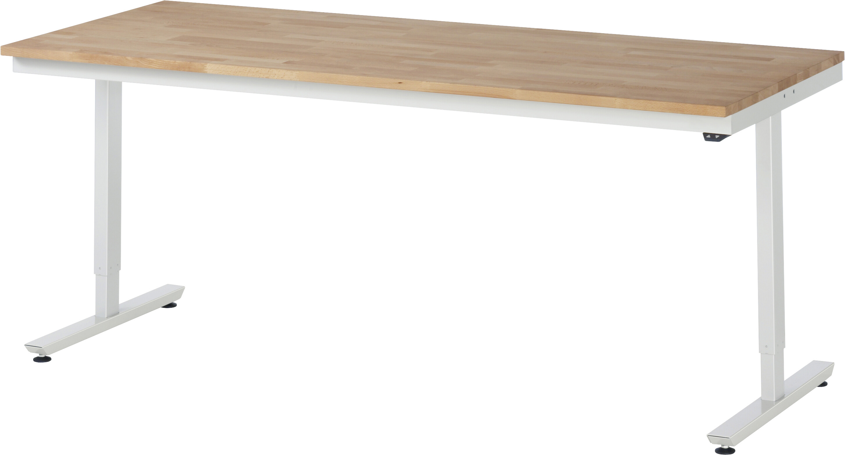 Arbeitstisch Serie adlatus 150 B2000 x T800 x H720-1120 mm Buche-Massiv-Platte 25 mm. Elektrische Verstellung mittels 2 Hubsäulen durch integrierten Linearantrieb. Pulverbeschichtung Flächenlast max. 150 kg Lieferung komplett montiert Qualitätsgarantie 5 Jahre Made in Germany