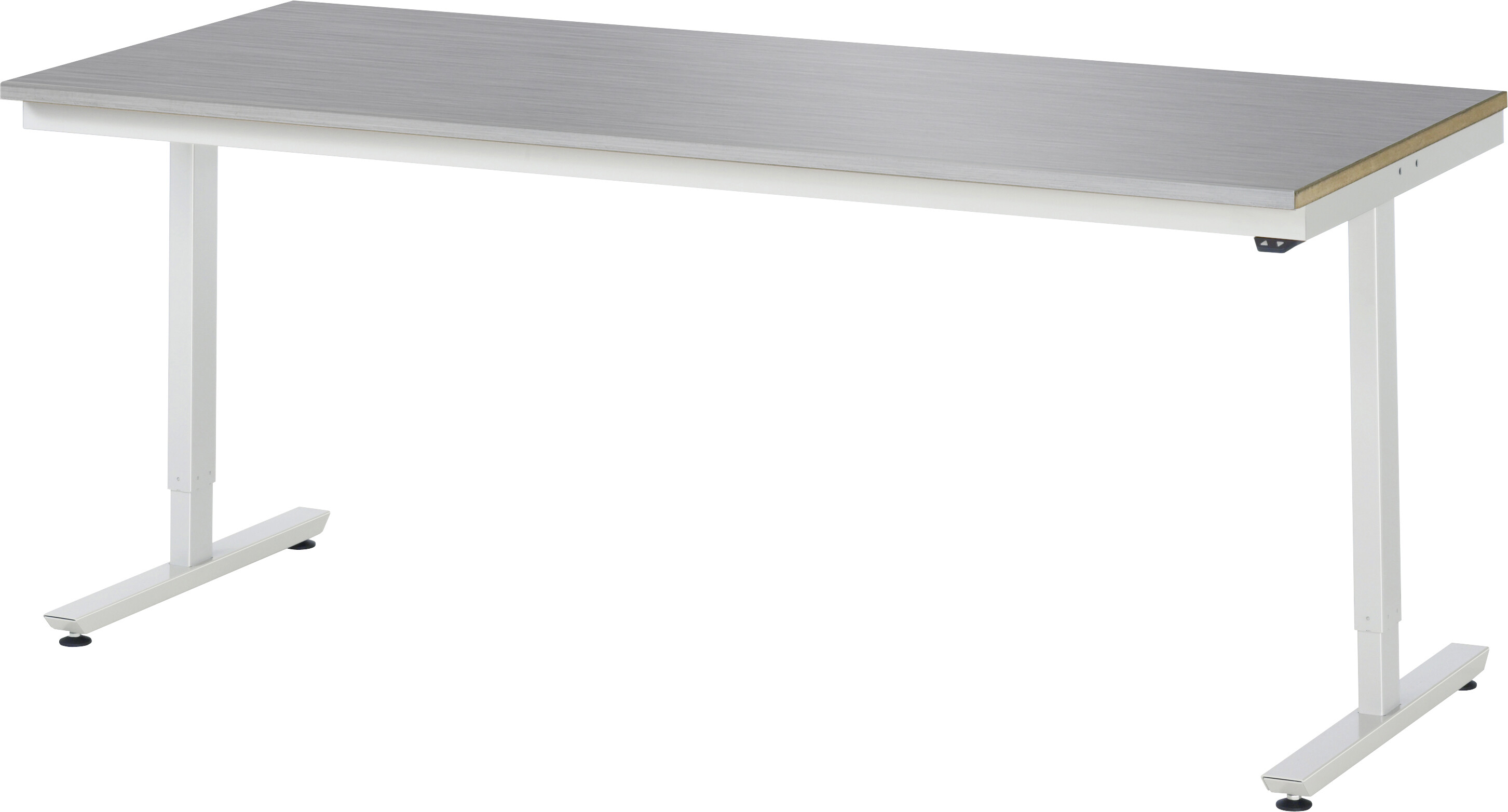 Arbeitstisch Serie adlatus 150 B2000 x T800 x H720-1120 mm Platte mit Edelstahlblechbelag 25 mm. Elektrische Verstellung mittels 2 Hubsäulen durch integrierten Linearantrieb. Pulverbeschichtung Flächenlast max. 150 kg Lieferung komplett montiert Qualitätsgarantie 5 Jahre Made in Germany