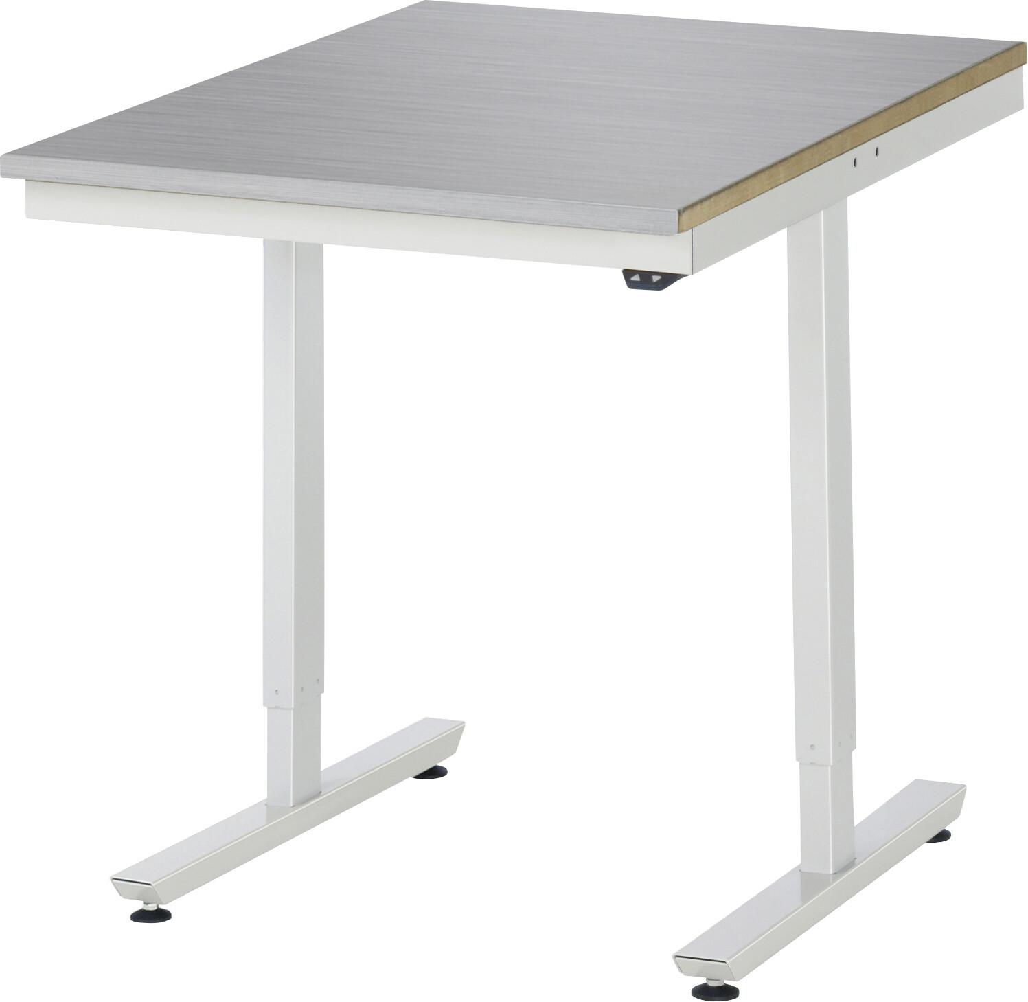 Arbeitstisch Serie adlatus 150 B750 x T1000 x H720-1120 mm Platte mit Edelstahlblechbelag 25 mm. Elektrische Verstellung mittels 2 Hubsäulen durch integrierten Linearantrieb. Pulverbeschichtung Flächenlast max. 150 kg Lieferung komplett montiert Qualitätsgarantie 5 Jahre Made in Germany