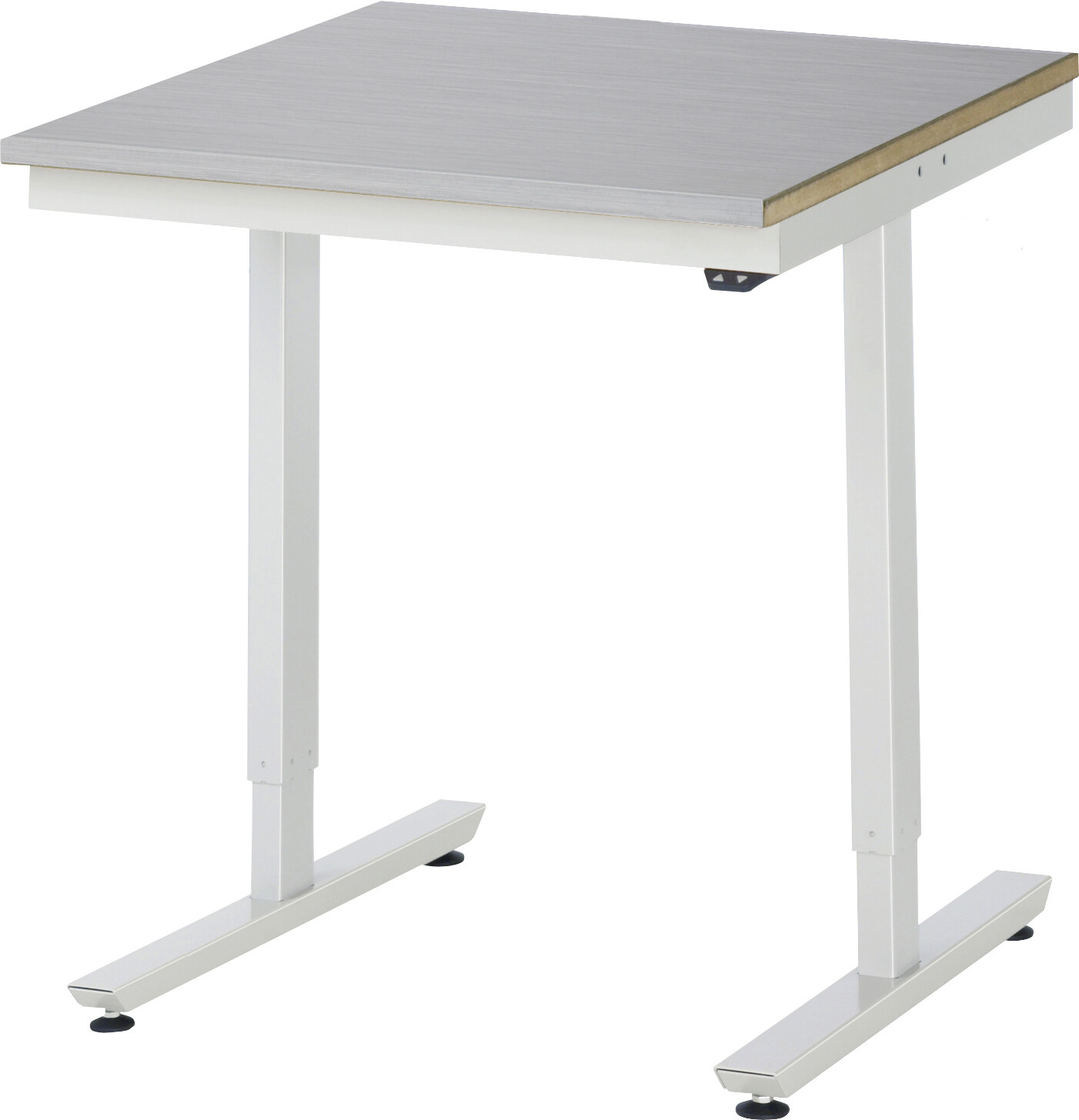Arbeitstisch Serie adlatus 150 B750 x T800 x H720-1120 mm Platte mit Edelstahlblechbelag 25 mm. Elektrische Verstellung mittels 2 Hubsäulen durch integrierten Linearantrieb. Pulverbeschichtung Flächenlast max. 150 kg Lieferung komplett montiert Qualitätsgarantie 5 Jahre Made in Germany