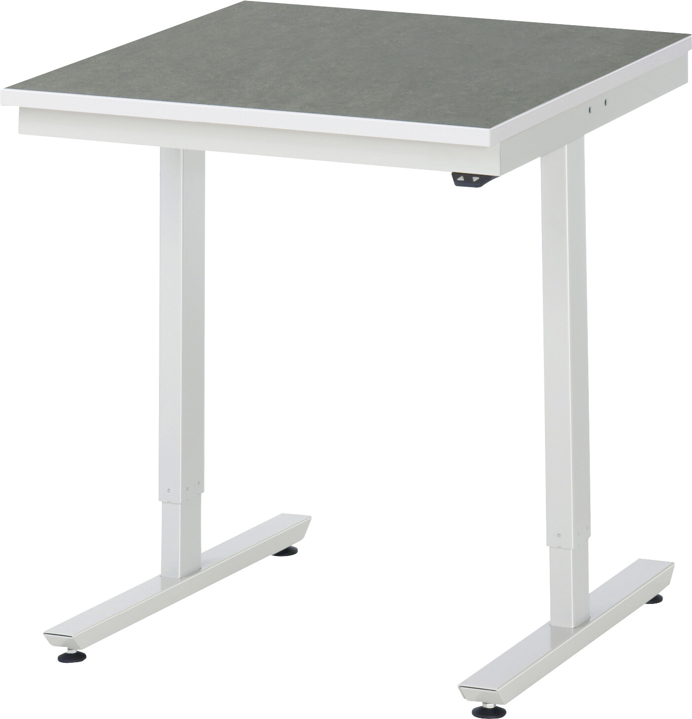 Arbeitstisch Serie adlatus 150 B750 x T800 x H720-1120 mm Platte mit Linoleumbelag 25 mm. Elektrische Verstellung mittels 2 Hubsäulen durch integrierten Linearantrieb. Pulverbeschichtung Flächenlast max. 150 kg Lieferung komplett montiert Qualitätsgarantie 5 Jahre Made in Germany