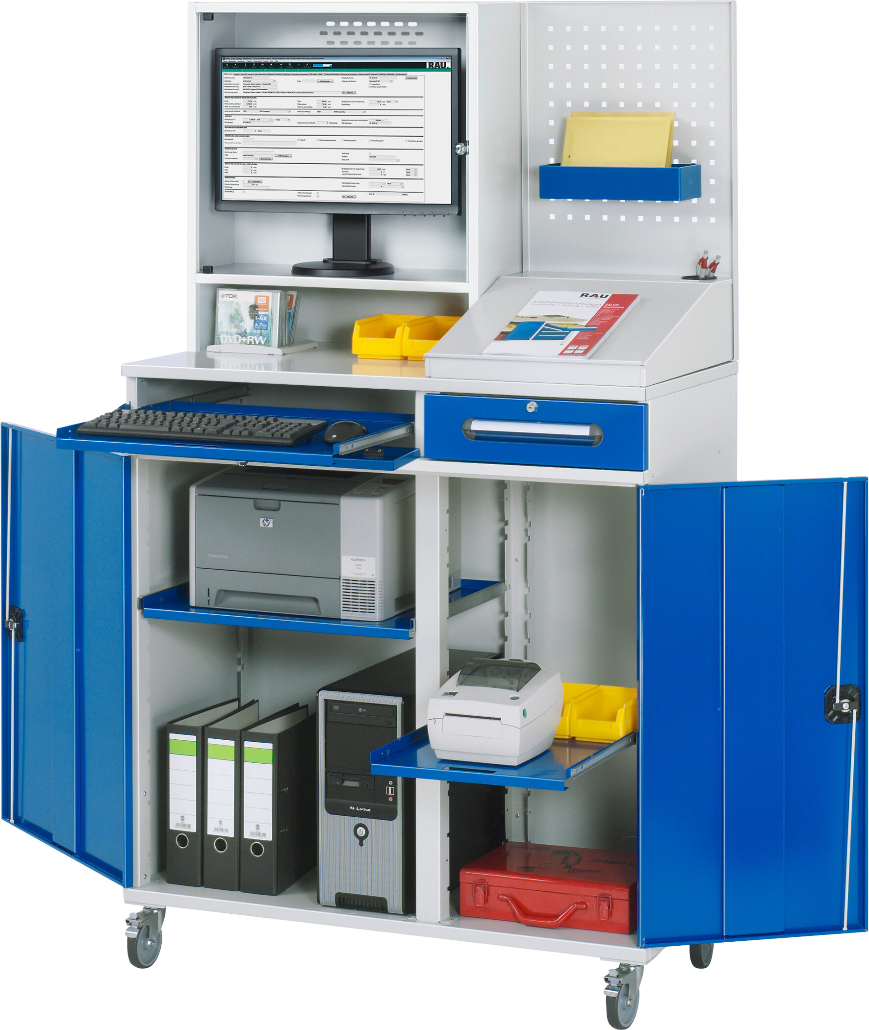 Computer-Schrank - Modell 99 B1100 x T520 x H1895 mm Pulverbeschichtung Belastbarkeit gesamt max. 200 kg Lieferung komplett montiert Qualitätsgarantie 5 Jahre Made in Germany