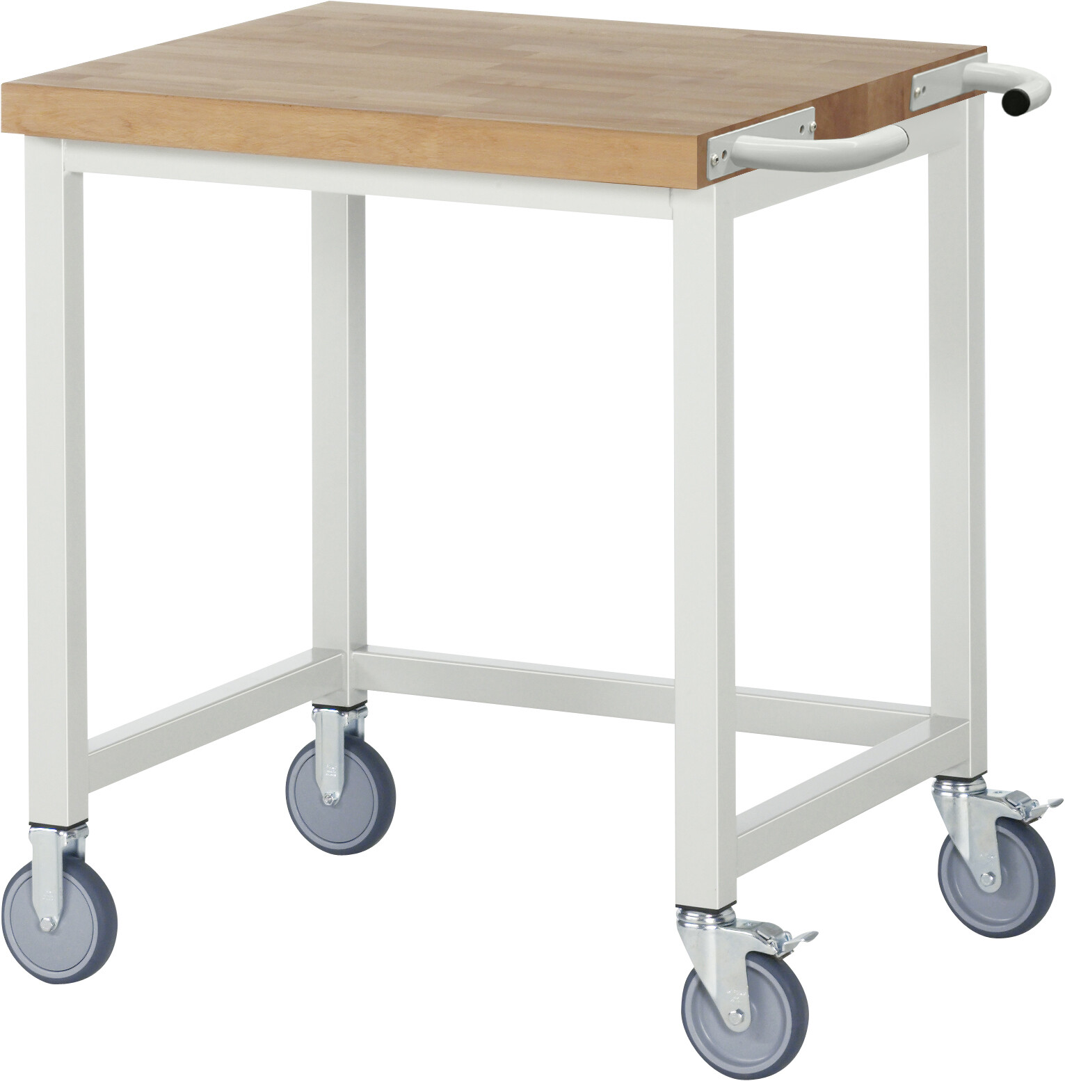 Fahrbare Werkbank - Modell 8000 BASIC B750 x T700 x H880 mm Buche-Massiv-Arbeitsplatte 40 mm. Gestell Vierkantrohr. 2 Bock- und 2 Lenkrollen mit Feststeller. Pulverbeschichtung Flächenlast max. 450 kg Lieferung komplett montiert Qualitätsgarantie 5 Jahre Made in Germany