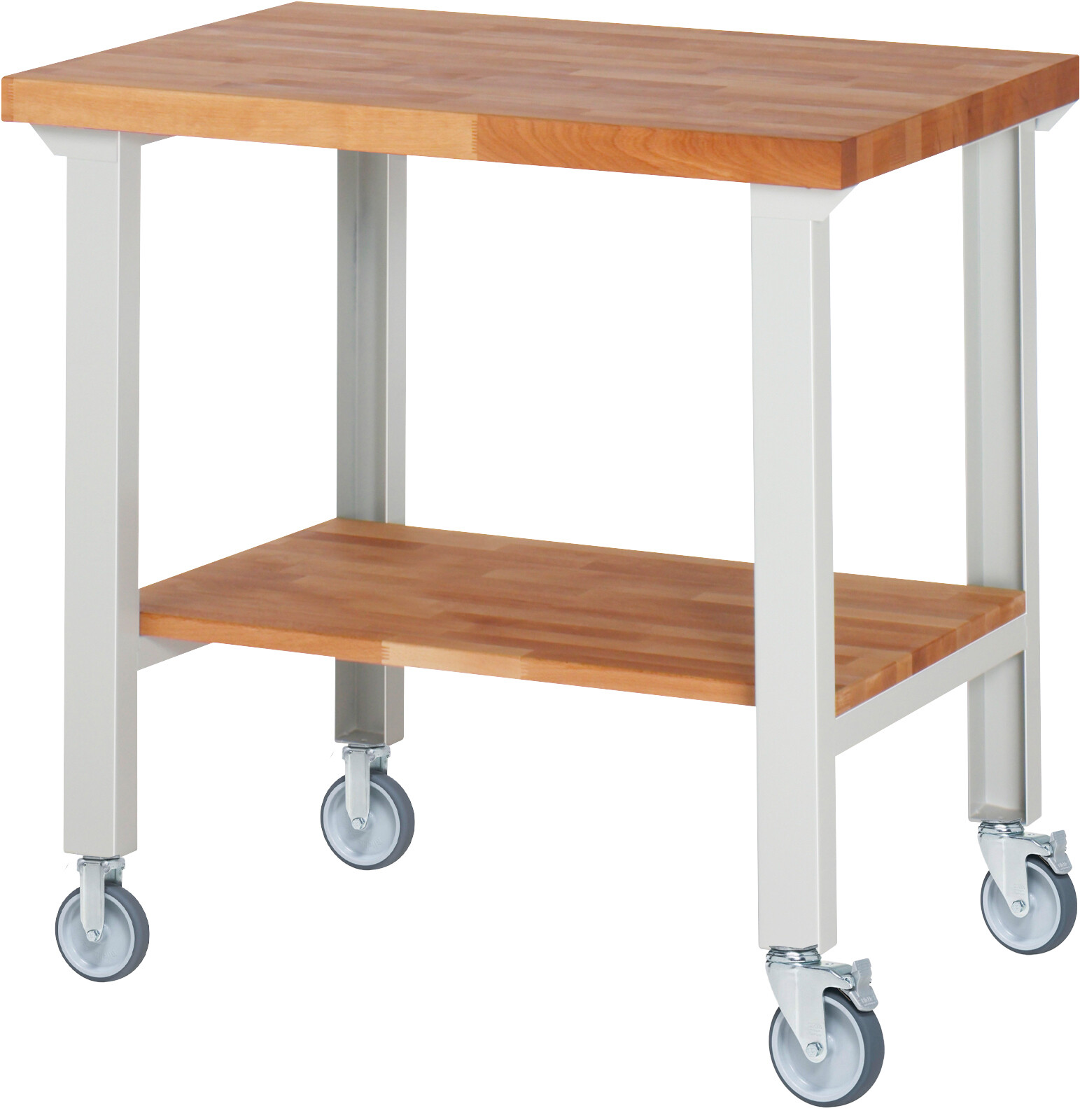 Fahrbare Werkbank 7000 - Modell 7000 22 B1000 x T700 x H1000 mm Buche-Massiv-Platte 40 mm. Werkbank mit Buche-Massiv-Ablageboden (T 545 mm). Pulverbeschichtung Belastbarkeit gesamt max. 200 kg Lieferung komplett montiert Qualitätsgarantie 5 Jahre Made in Germany