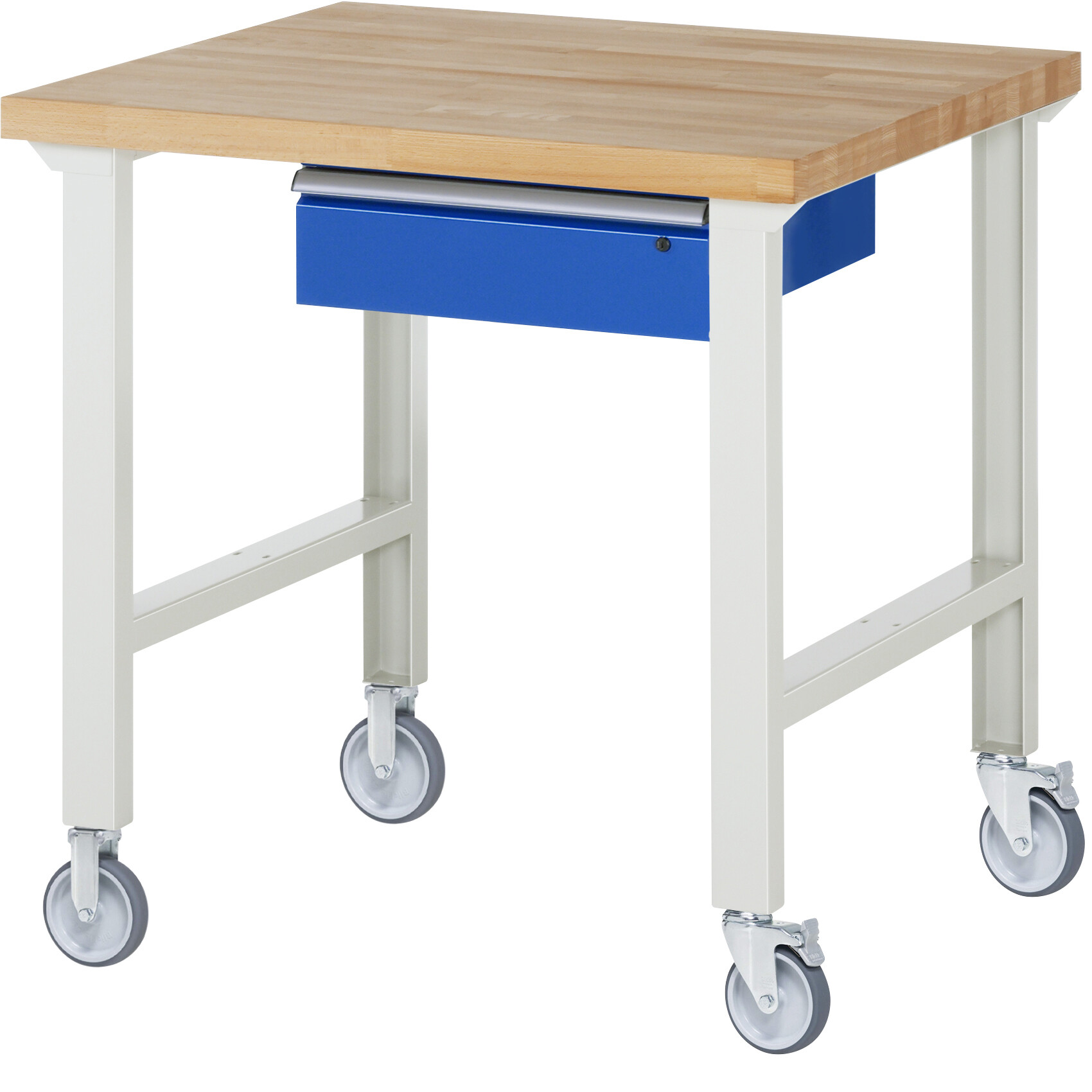 Fahrbare Werkbank 7000 - Modell 7001 22 B1000 x T900 x H1000 mm Buche-Massiv-Platte 40 mm. 1 x Schublade (1xH150 mm). Pulverbeschichtung Belastbarkeit gesamt max. 200 kg Lieferung komplett montiert Qualitätsgarantie 5 Jahre Made in Germany