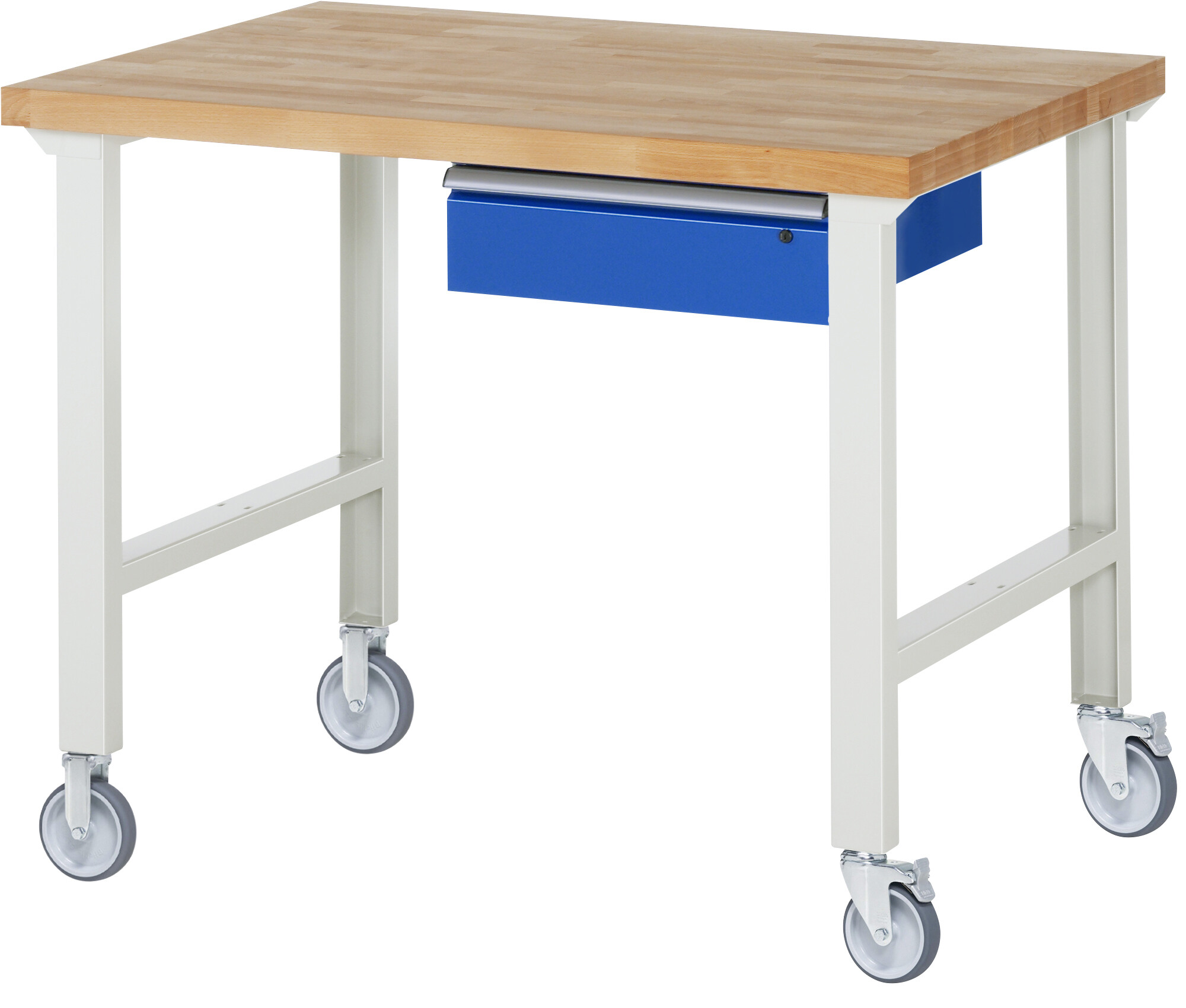 Fahrbare Werkbank 7000 - Modell 7001 22 B1250 x T900 x H1000 mm Buche-Massiv-Platte 40 mm. 1 x Schublade (1xH150 mm). Pulverbeschichtung Belastbarkeit gesamt max. 200 kg Lieferung komplett montiert Qualitätsgarantie 5 Jahre Made in Germany