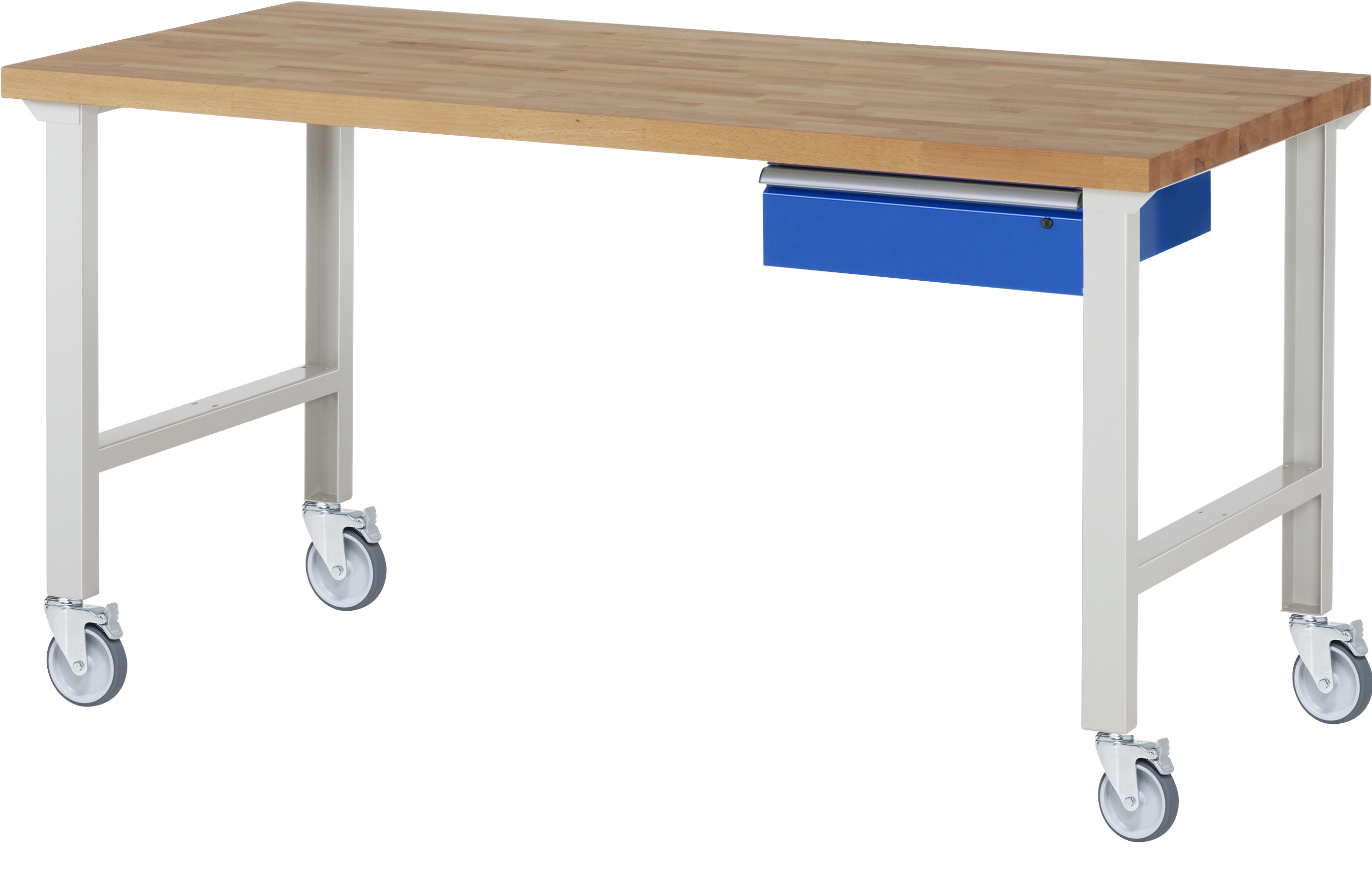 Fahrbare Werkbank 7000 - Modell 7001 4 B2000 x T900 x H1000 mm Buche-Massiv-Platte 40 mm. 1 x Schublade (1xH150 mm). Pulverbeschichtung Belastbarkeit gesamt max. 200 kg Lieferung komplett montiert Qualitätsgarantie 5 Jahre Made in Germany