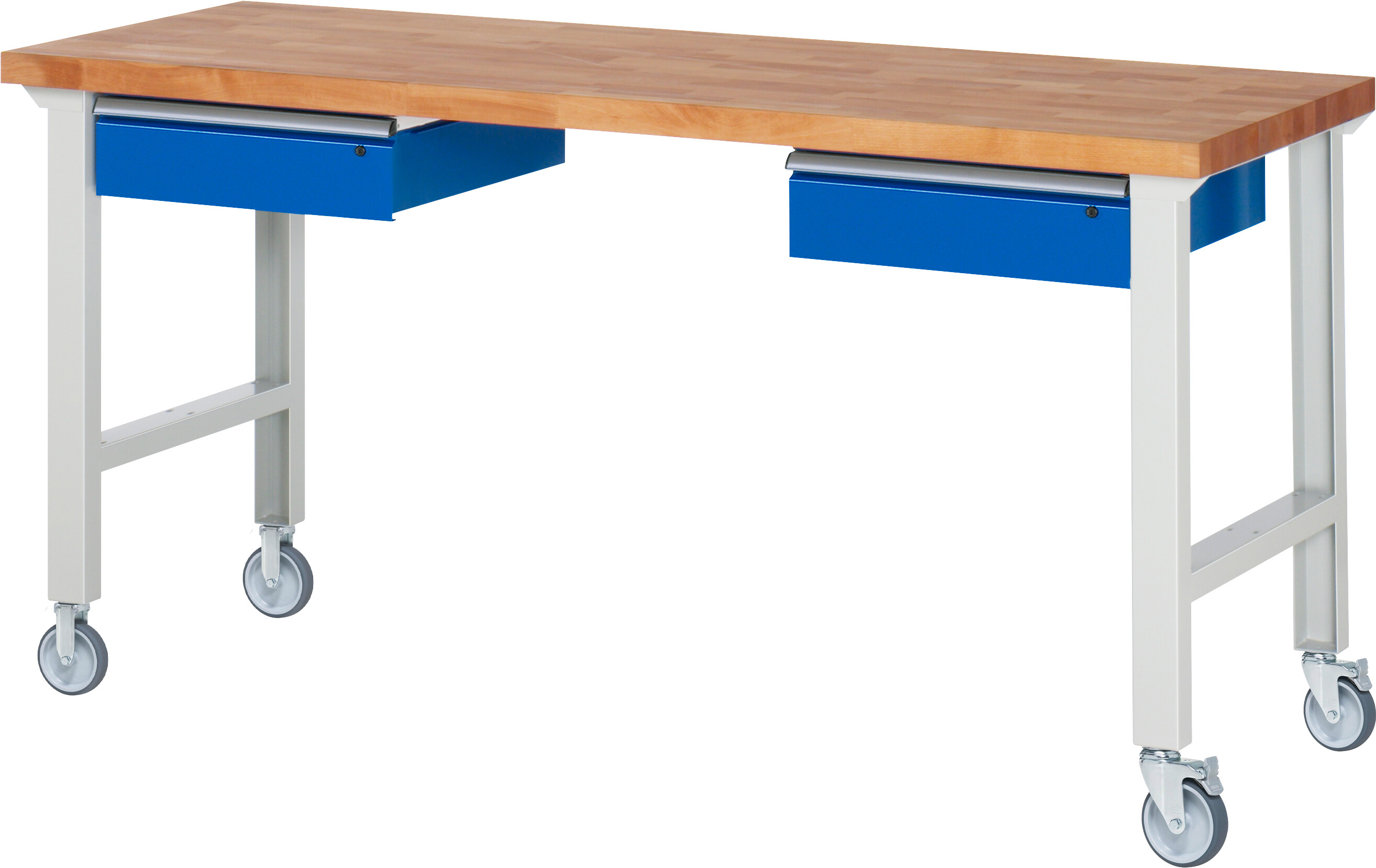 Fahrbare Werkbank 7000 - Modell 7002 22 B2000 x T700 x H1000 mm Buche-Massiv-Platte 40 mm. 2 x Schublade (2xH150 mm). Pulverbeschichtung Belastbarkeit gesamt max. 200 kg Lieferung komplett montiert Qualitätsgarantie 5 Jahre Made in Germany