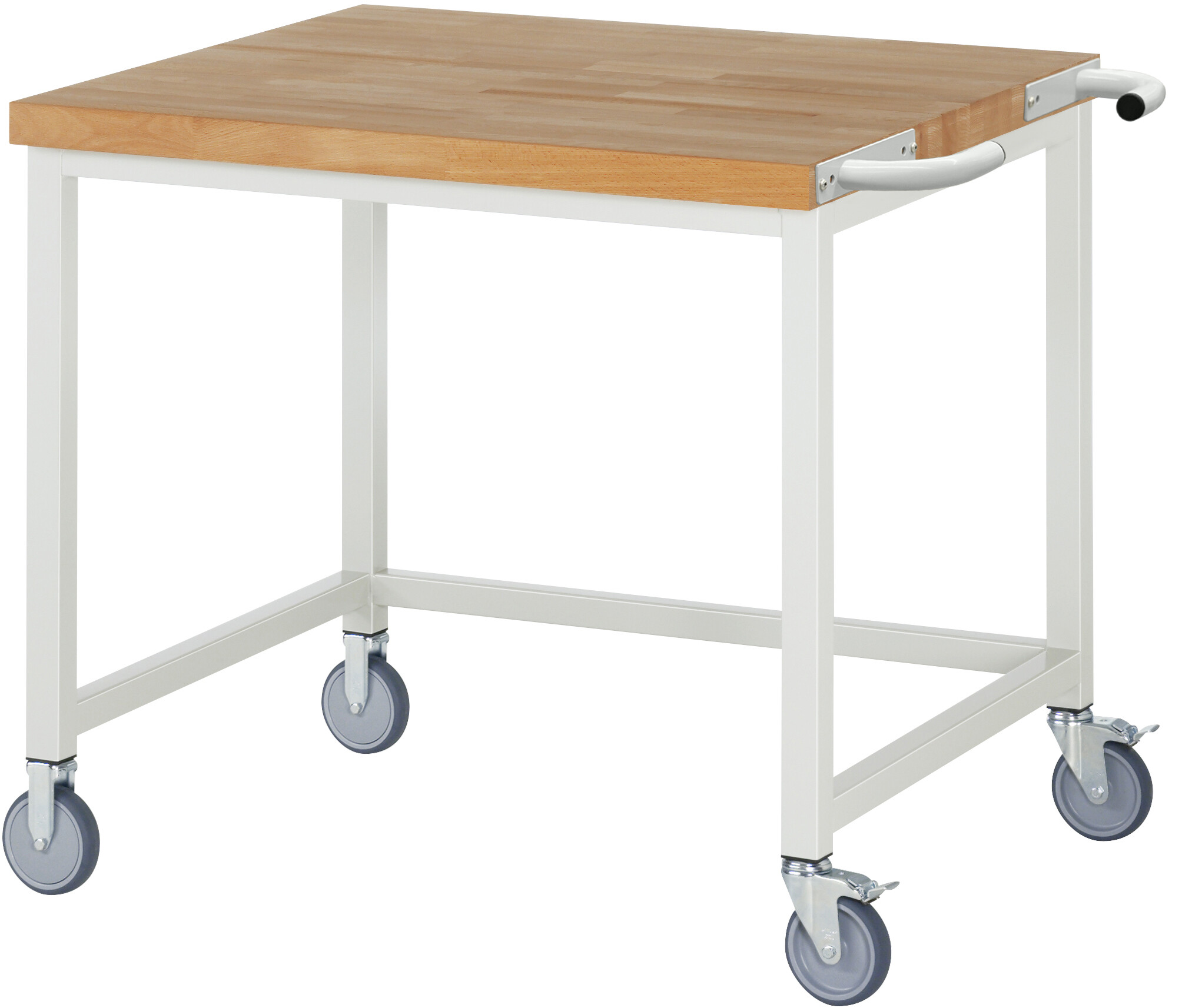 Fahrbare Werkbank 8000 - Modell 8000 B1000 x T900 x H880 mm Buche-Massiv-Arbeitsplatte 40 mm. Gestell Vierkantrohr. 2 Bock- und 2 Lenkrollen mit Feststeller. Pulverbeschichtung Flächenlast max. 450 kg Lieferung komplett montiert Qualitätsgarantie 5 Jahre Made in Germany
