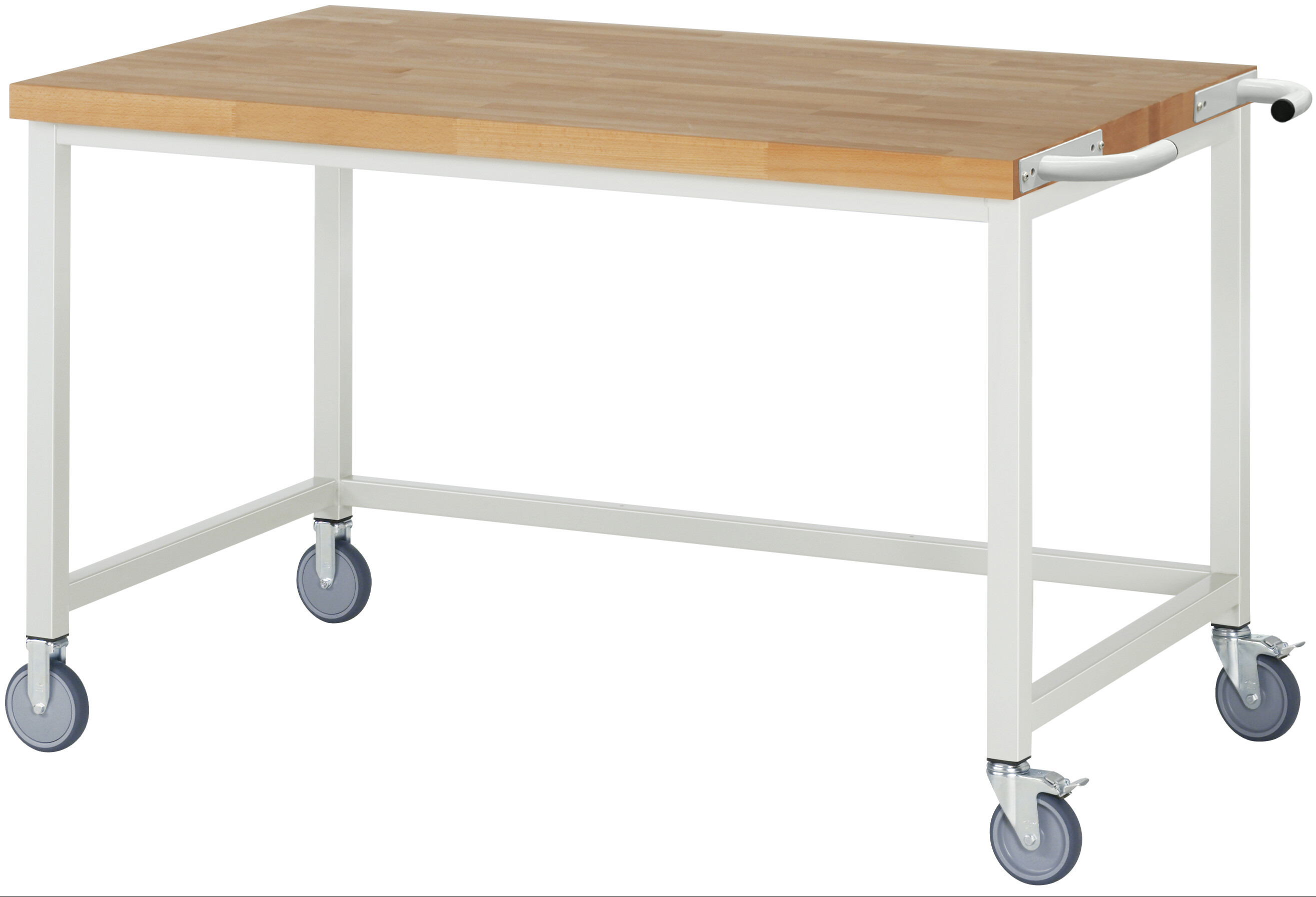 Fahrbare Werkbank 8000 - Modell 8000 B1500 x T900 x H880-1080 mm Buche-Massiv-Arbeitsplatte 40 mm. Gestell Vierkantrohr. 2 Bock- und 2 Lenkrollen mit Feststeller. Pulverbeschichtung Flächenlast max. 450 kg Lieferung komplett montiert Qualitätsgarantie 5 Jahre Made in Germany