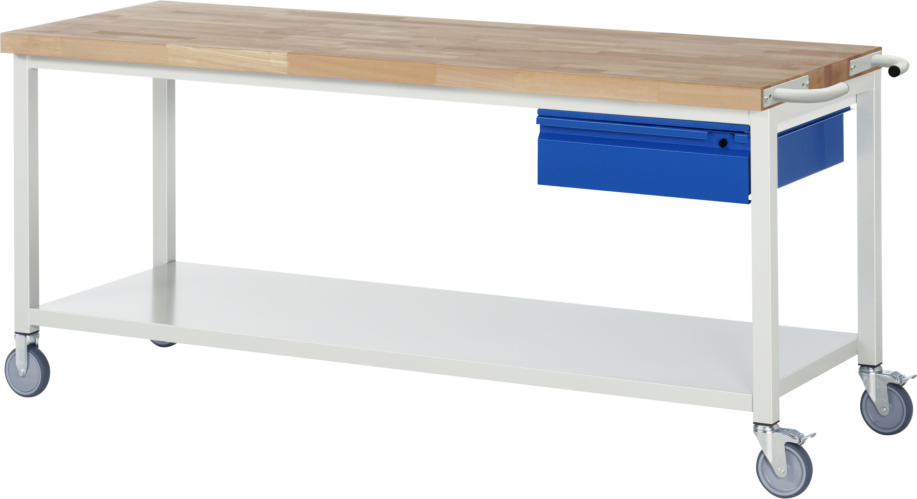Fahrbare Werkbank 8001I6, B2000xT700xH880mm, Ablageboden Metall, 1xSchublade-TA