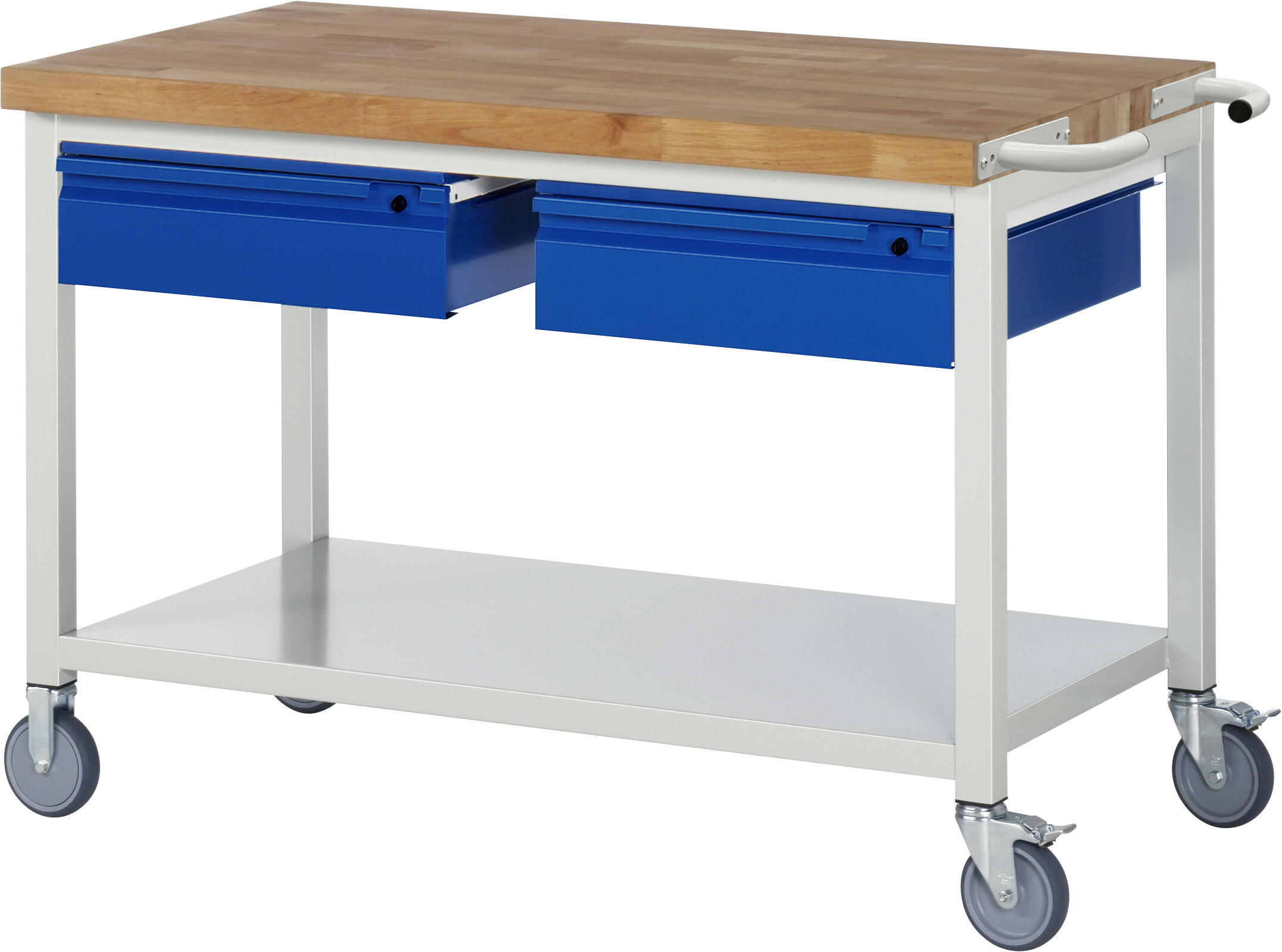 Fahrbare Werkbank 8002I6, B1250xT700xH880mm, Ablageboden Metall, 2xSchublade-TA