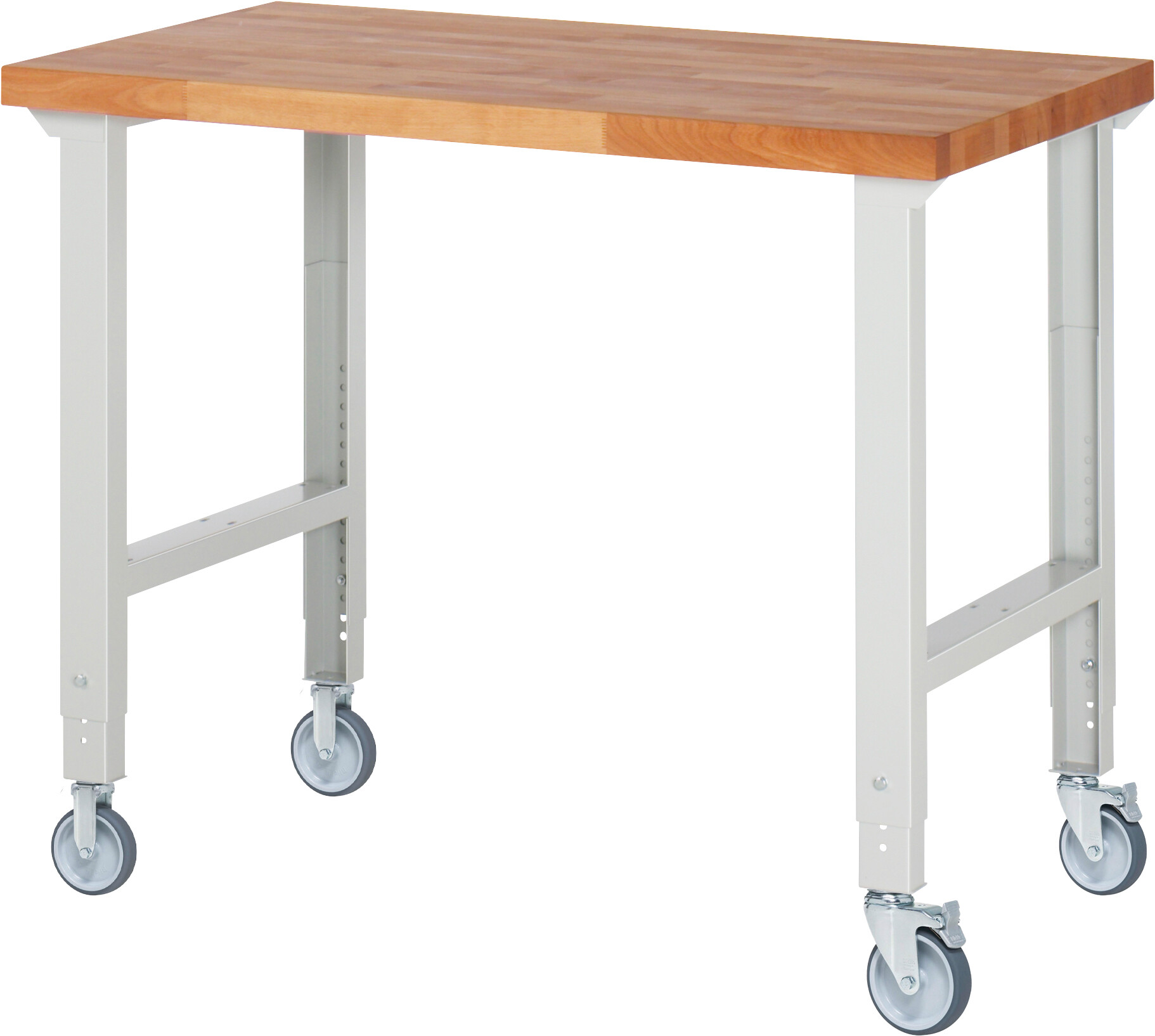 Fahrbare Werkbank 7000 - Modell 7000 22 B1250 x T700 x H950-1000 mm Buche-Massiv-Platte 40 mm. Werkbank mit einstellbarer Arbeitshöhe. Pulverbeschichtung Belastbarkeit gesamt max. 200 kg Lieferung komplett montiert Qualitätsgarantie 5 Jahre Made in Germany