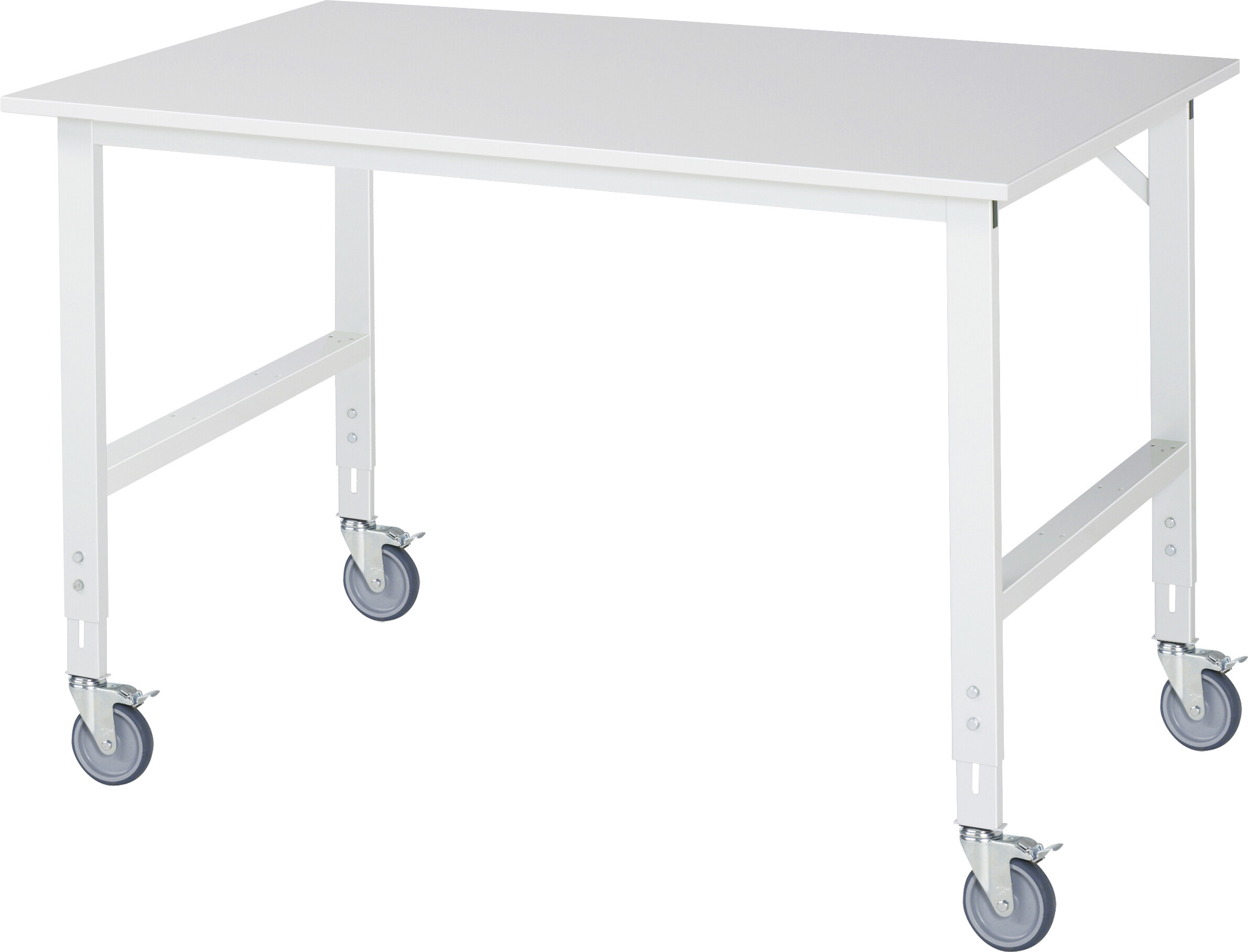 Fahrbarer Arbeitstisch Tom (verstellbar) B1500 x T1000 x H910-1230 mm Melaminharzbeschichtete-Platte 22 mm. Gestell Vierkantrohr. 4 Lenkrollen mit Feststeller Pulverbeschichtung Flächenlast max. 450 kg Lieferung zerlegt - einfachste Montage Qualitätsgarantie 5 Jahre Made in Germany