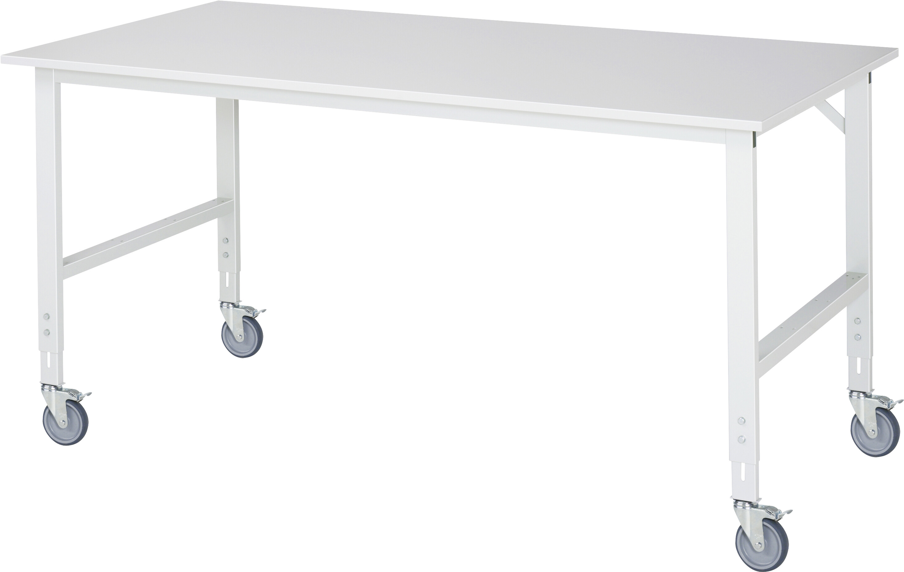 Fahrbarer Arbeitstisch Tom (verstellbar) B2000 x T1000 x H910-1230 mm Melaminharzbeschichtete-Platte 22 mm. Gestell Vierkantrohr. 4 Lenkrollen mit Feststeller Pulverbeschichtung Flächenlast max. 450 kg Lieferung zerlegt - einfachste Montage Qualitätsgarantie 5 Jahre Made in Germany