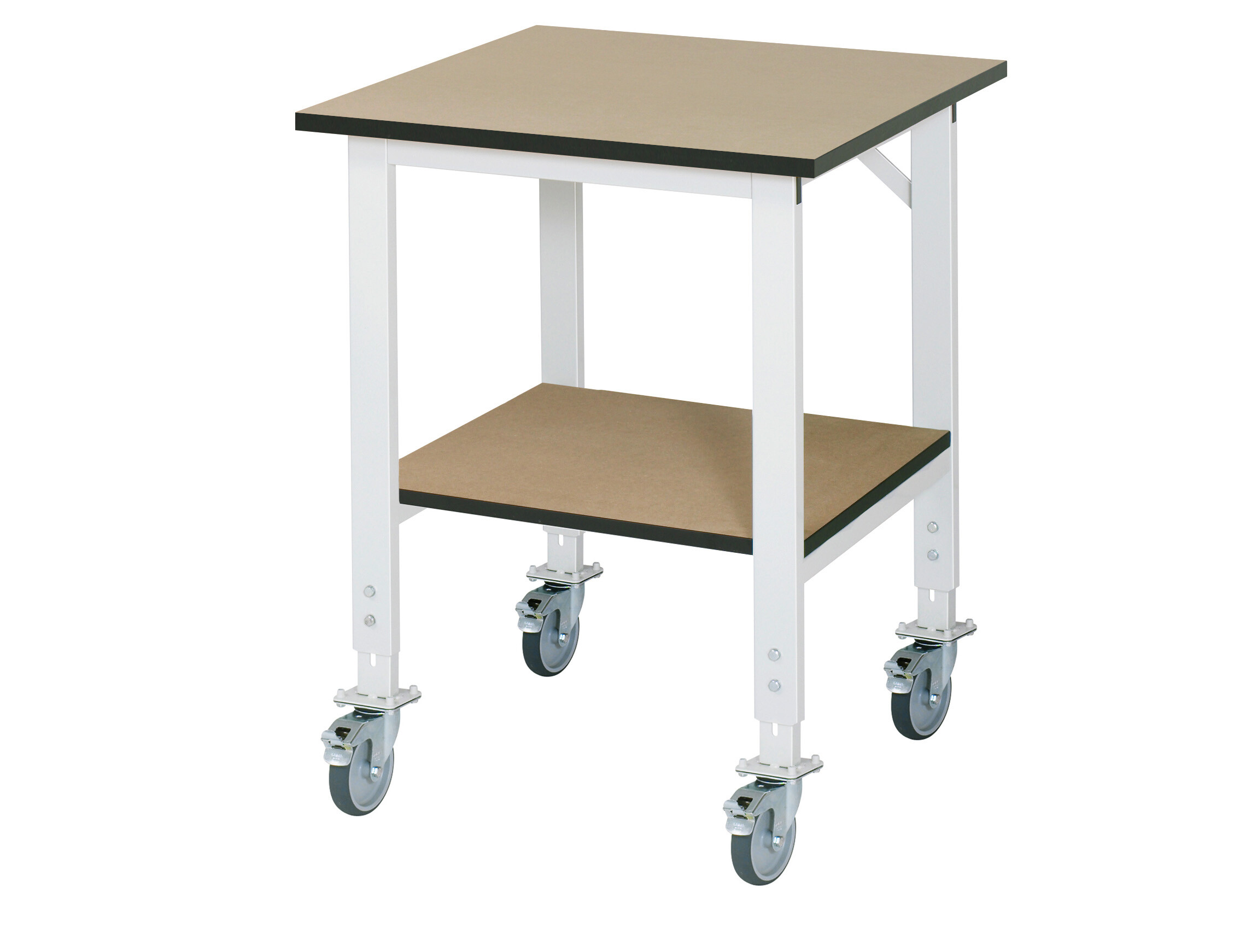 Arbeitstisch Serie Tom (K-Modell 01) B750 x T800 x H910-1230 mm MDF-Platte 22 mm. Gestell 60x30 mm, Arbeitshöhe verstellbar. Ablageboden MDF. Rollensatz (4 Lenkrollen mit Feststeller). Pulverbeschichtung Flächenlast max. 450 kg Lieferung zerlegt - einfachste Montage Qualitätsgarantie 5 Jahre Made in Germany