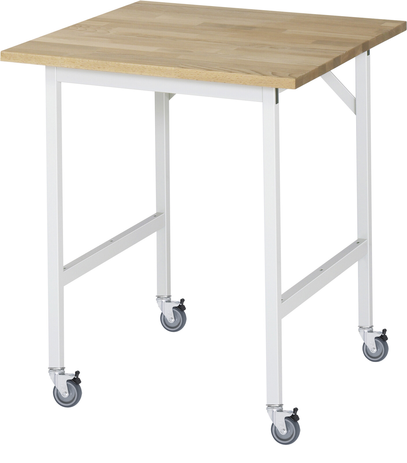 Fahrbarer Arbeitstisch Jerry B750 x T800 x H900 mm Buche-Massiv Arbeitsplatte 25 mm. Gestell Vierkantrohr. 4 Lenkrollen mit Feststeller Pulverbeschichtung Flächenlast max. 300 kg Lieferung zerlegt - einfachste Montage Qualitätsgarantie 5 Jahre Made in Germany