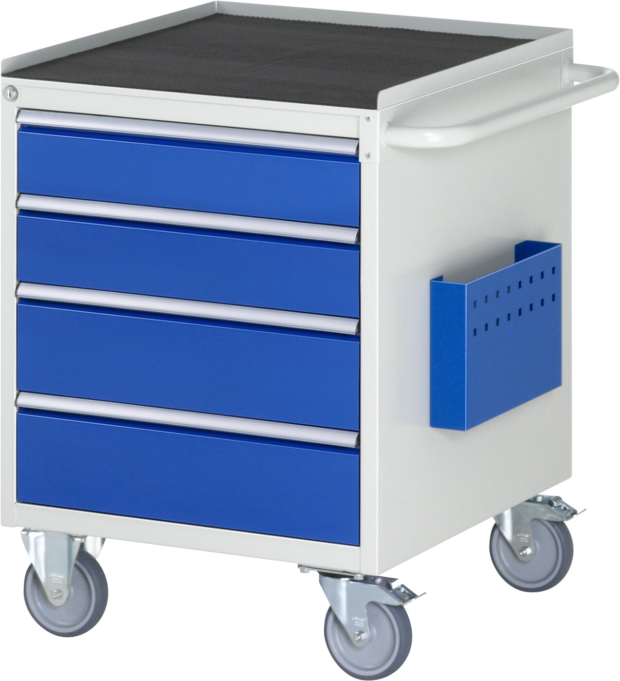 Montagewagen Serie 7000 B580 x T650 x H795 mm Metall-Top 25 mm. 4 x Schublade (2xH120, 2xH150 mm). 2 Bock- und 2 Lenkrollen mit Feststeller. Pulverbeschichtung Belastbarkeit gesamt max. 450 kg Lieferung komplett montiert Qualitätsgarantie 5 Jahre Made in Germany