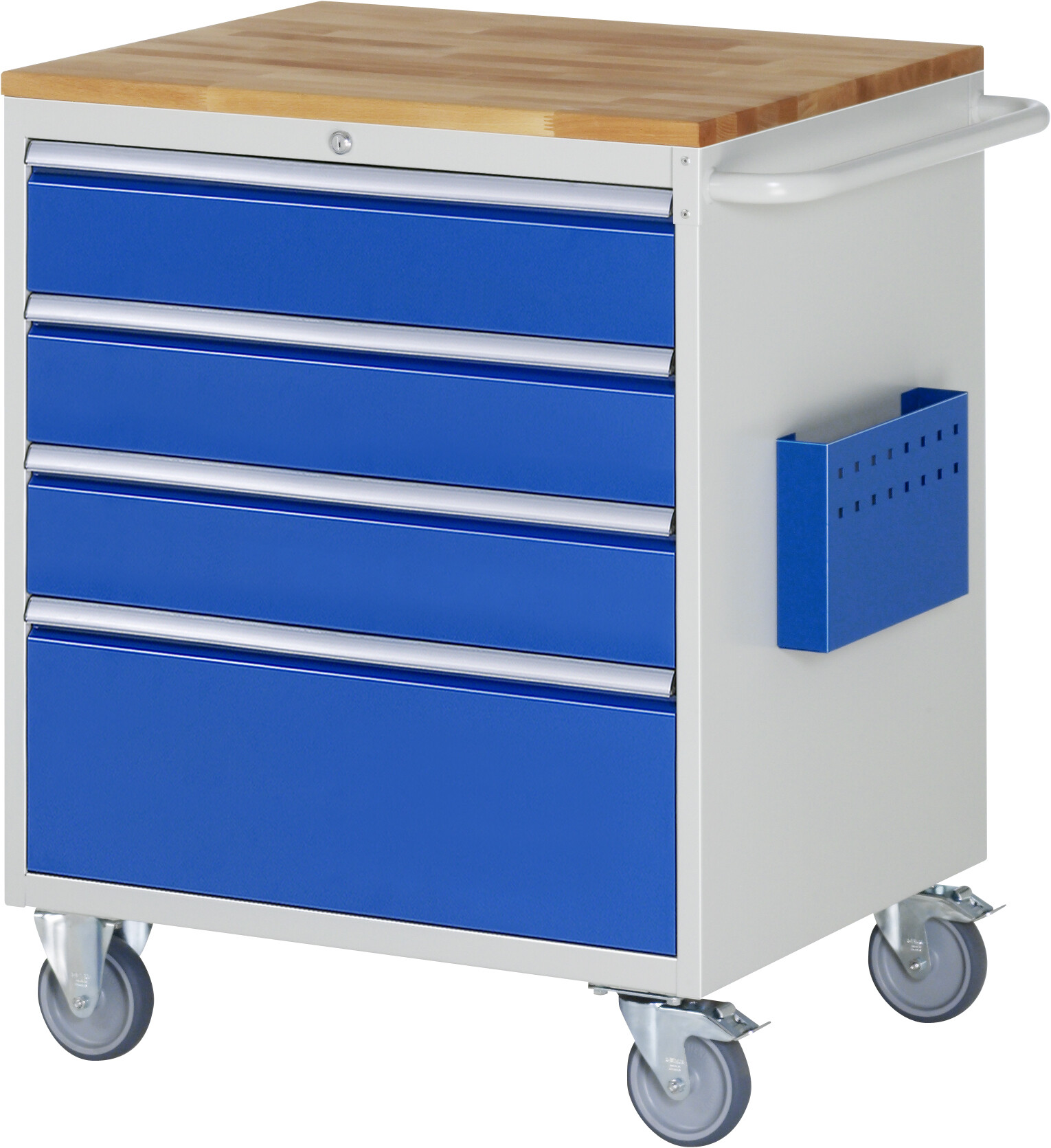 Montagewagen Serie 7000 B770 x T650 x H975 mm Buche-Top 25 mm. 4 x Schublade (3xH150, 1xH270 mm). 2 Bock- und 2 Lenkrollen mit Feststeller. Pulverbeschichtung Belastbarkeit gesamt max. 450 kg Lieferung komplett montiert Qualitätsgarantie 5 Jahre Made in Germany