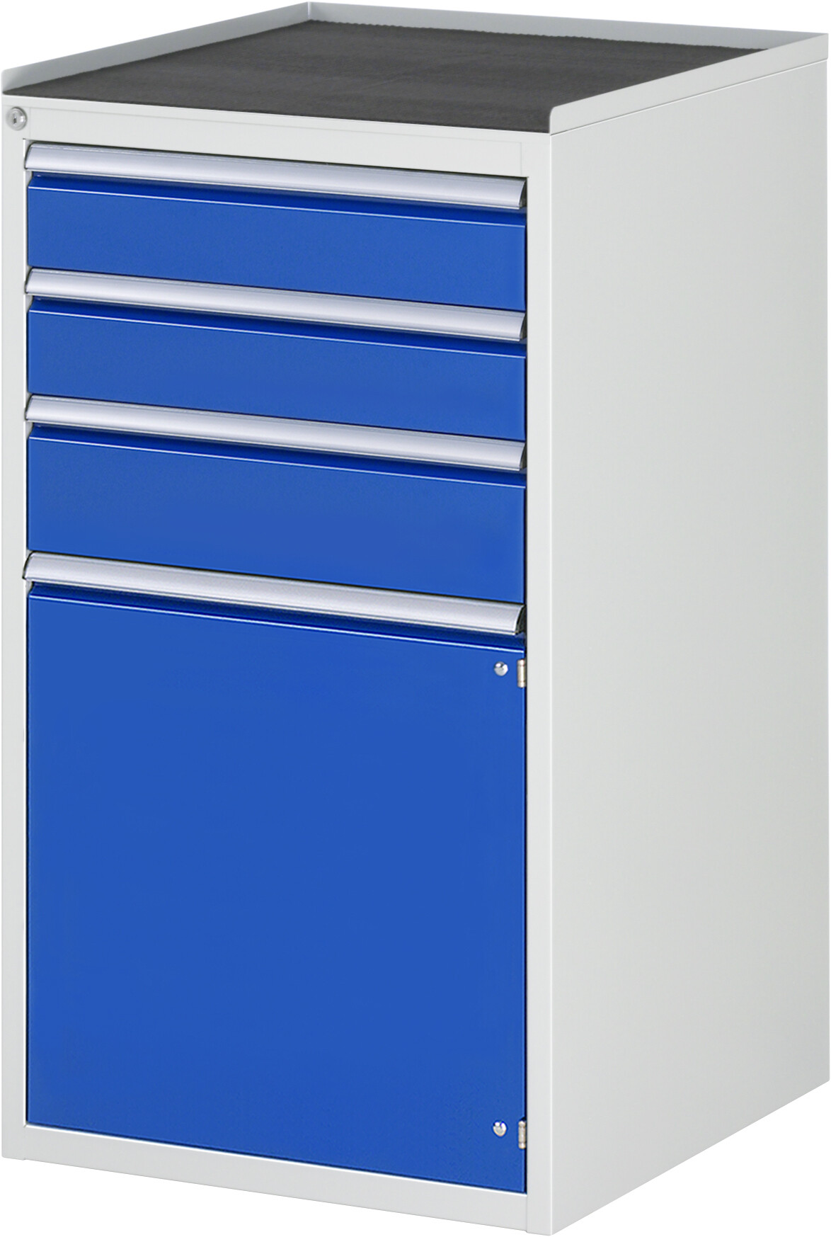 Schubladenschrank Serie 7000 B580 x T650 x H1035 mm Metall-Top 25 mm. 3 x Schublade (2xH120, 1xH150 mm). 1 x Flügeltür (H540 mm mit Fachboden höhenverstellbar). Pulverbeschichtung Flächenlast max. 750 kg Lieferung komplett montiert Qualitätsgarantie 5 Jahre Made in Germany