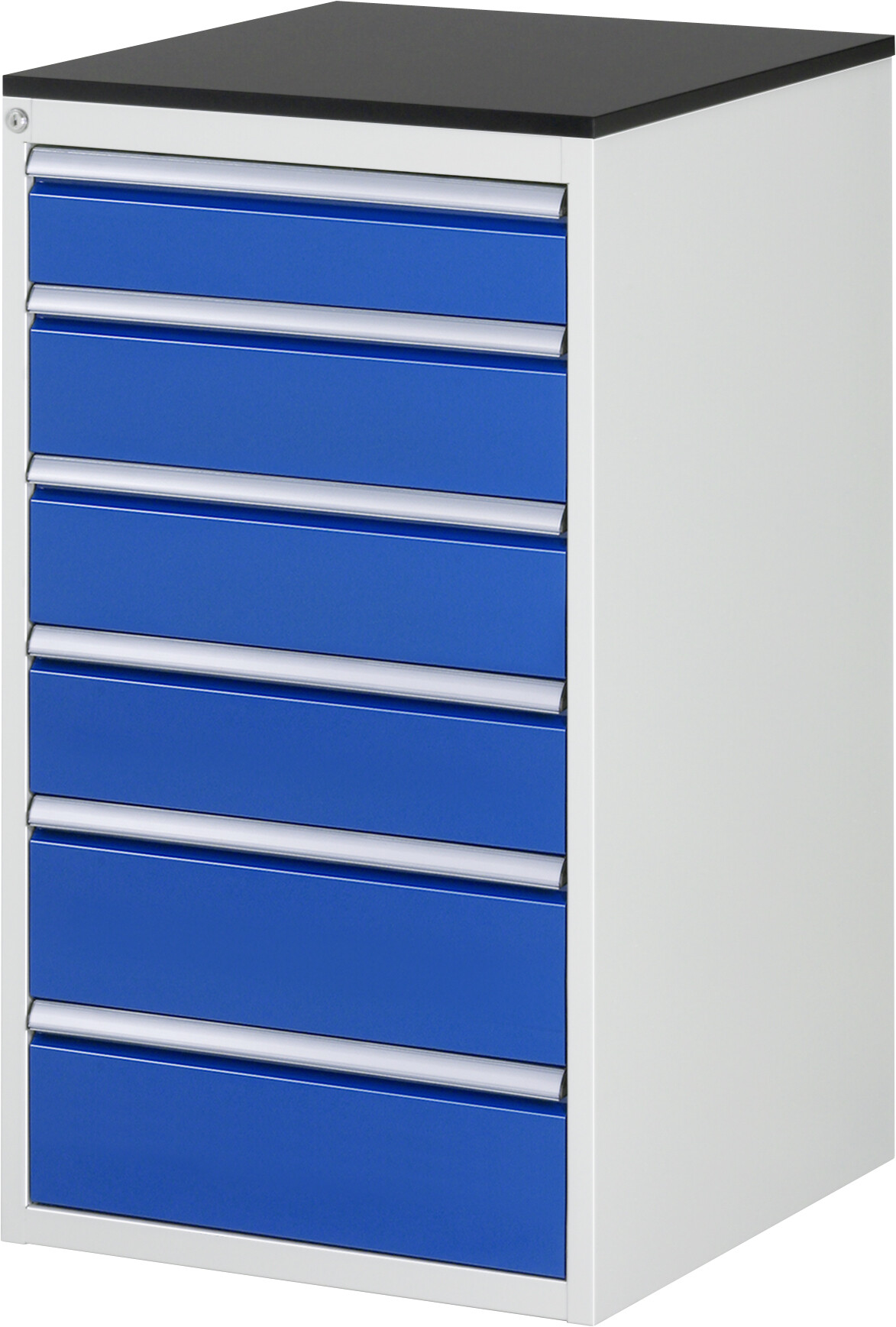 Schubladenschrank Serie 7000 B580 x T650 x H1030 mm Melamin-Top 19 mm. 6 x Schublade (1xH120, 3xH150, 2xH180 mm). Pulverbeschichtung Flächenlast max. 750 kg Lieferung komplett montiert Qualitätsgarantie 5 Jahre Made in Germany