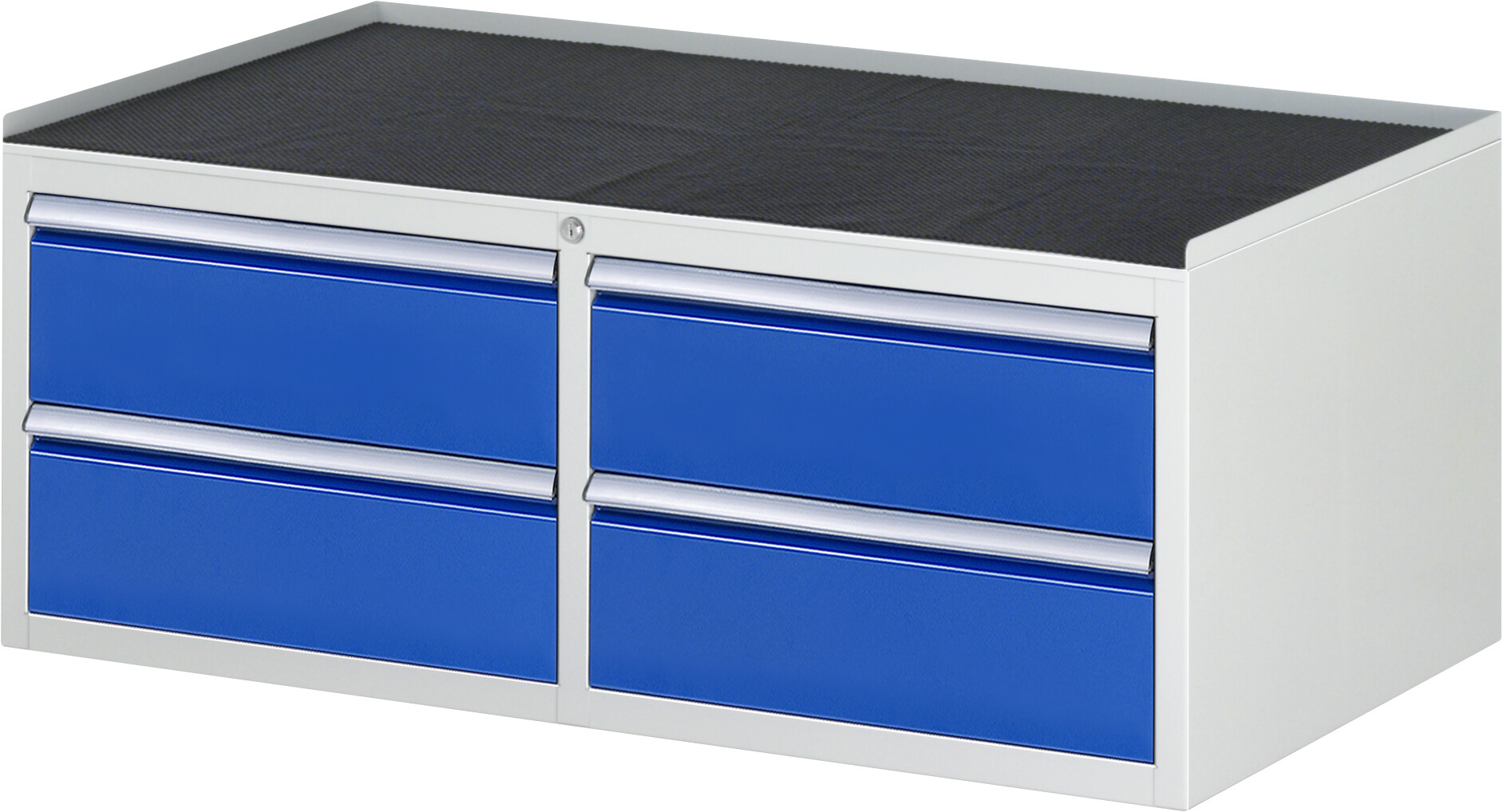Schubladenschrank Serie 7000 B1145 x T650 x H465 mm Metall-Top 25 mm. 4 x Schublade (4xH180 mm). Pulverbeschichtung Flächenlast max. 750 kg Lieferung komplett montiert Qualitätsgarantie 5 Jahre Made in Germany