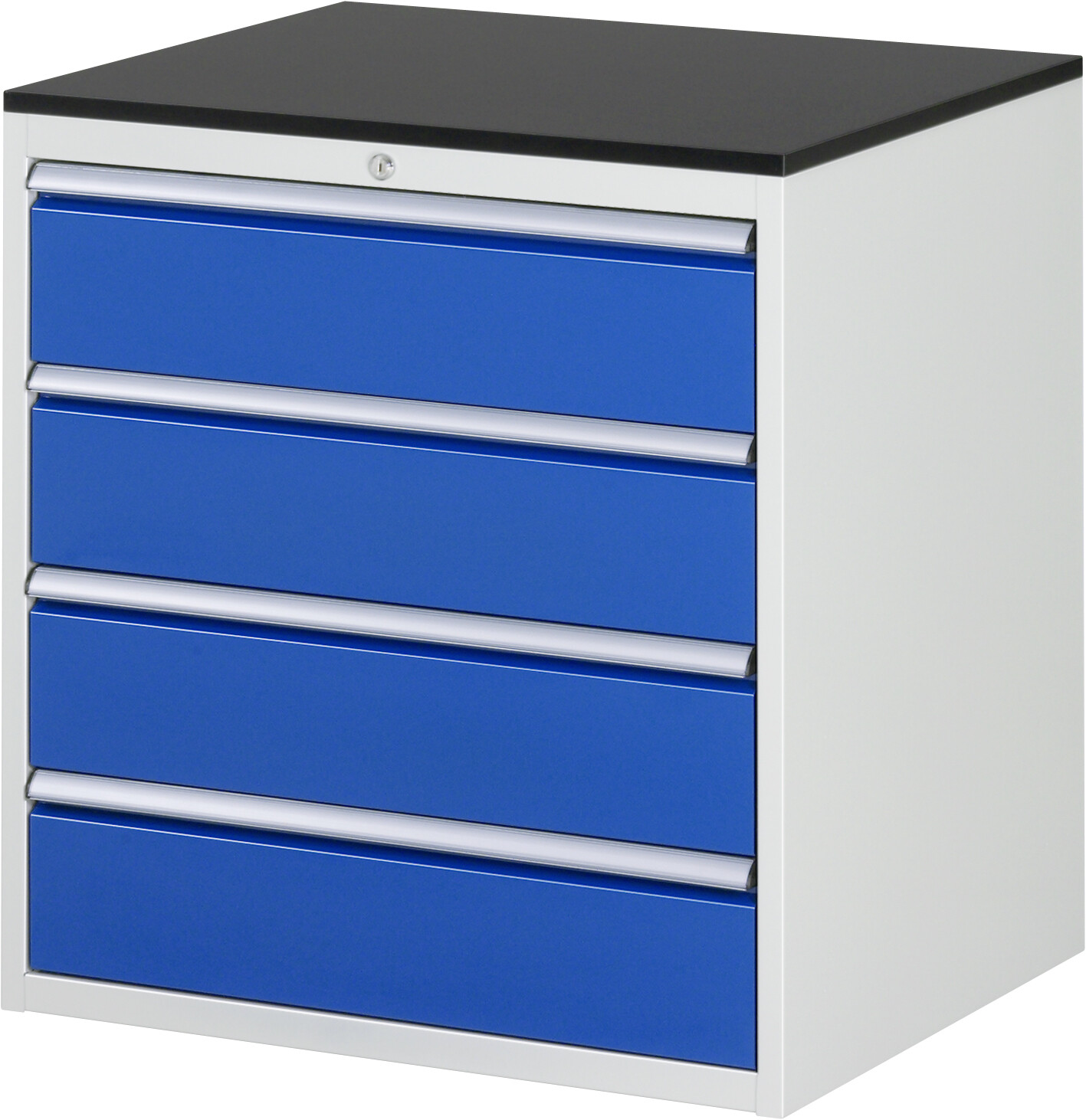 Schubladenschrank Serie 7000 B770 x T650 x H820 mm Melamin-Top 19 mm. 4 x Schublade (4xH180 mm). Pulverbeschichtung Flächenlast max. 750 kg Lieferung komplett montiert Qualitätsgarantie 5 Jahre Made in Germany