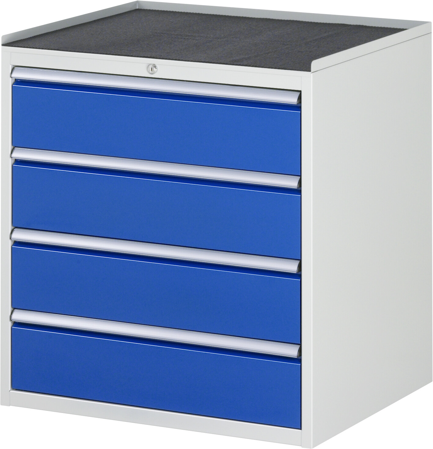 Schubladenschrank Serie 7000 B770 x T650 x H825 mm Metall-Top 25 mm. 4 x Schublade (4xH180 mm). Pulverbeschichtung Flächenlast max. 750 kg Lieferung komplett montiert Qualitätsgarantie 5 Jahre Made in Germany