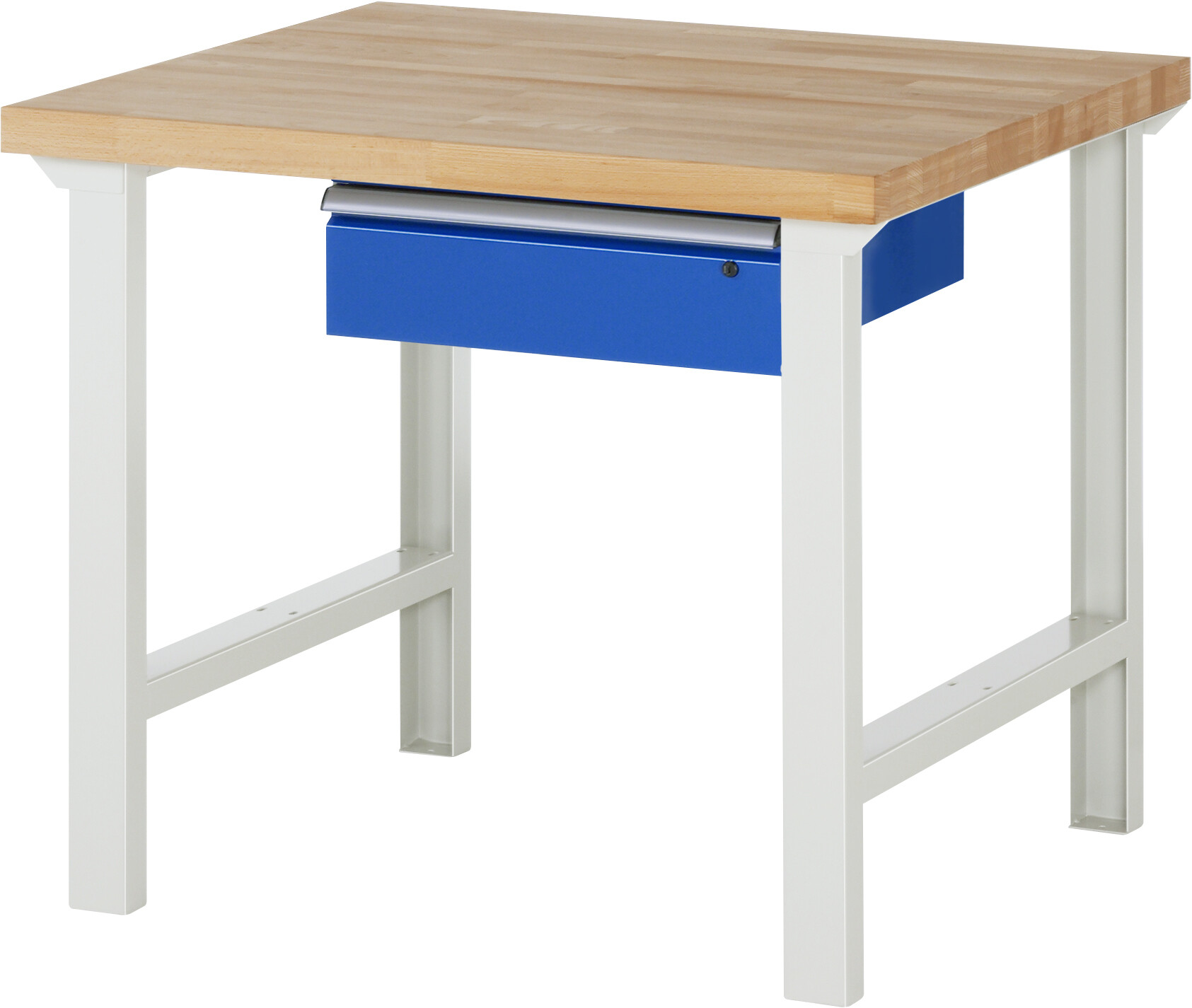 Werkbank Serie 7000 - Modell 7001 B1000 x T900x H840 mm Buche-Massiv-Platte 40 mm. 1 x Schublade (1xH150 mm). Pulverbeschichtung Flächenlast max. 750 kg Lieferung komplett montiert Qualitätsgarantie 5 Jahre Made in Germany
