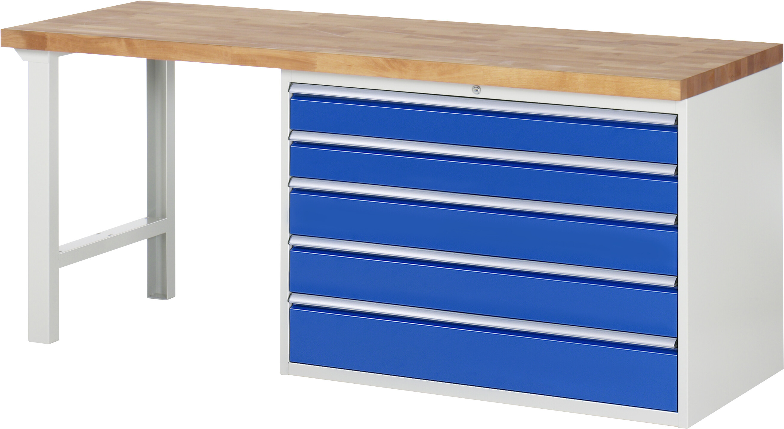 Werkbank Serie 7000 - Modell 7713 B2000 x T700 x H890 mm Buche-Massiv-Platte 40 mm. 5 x Schublade (2xH120, 2xH150, 1xH180 mm). Pulverbeschichtung Flächenlast max. 1.000 kg Lieferung komplett montiert Qualitätsgarantie 5 Jahre Made in Germany