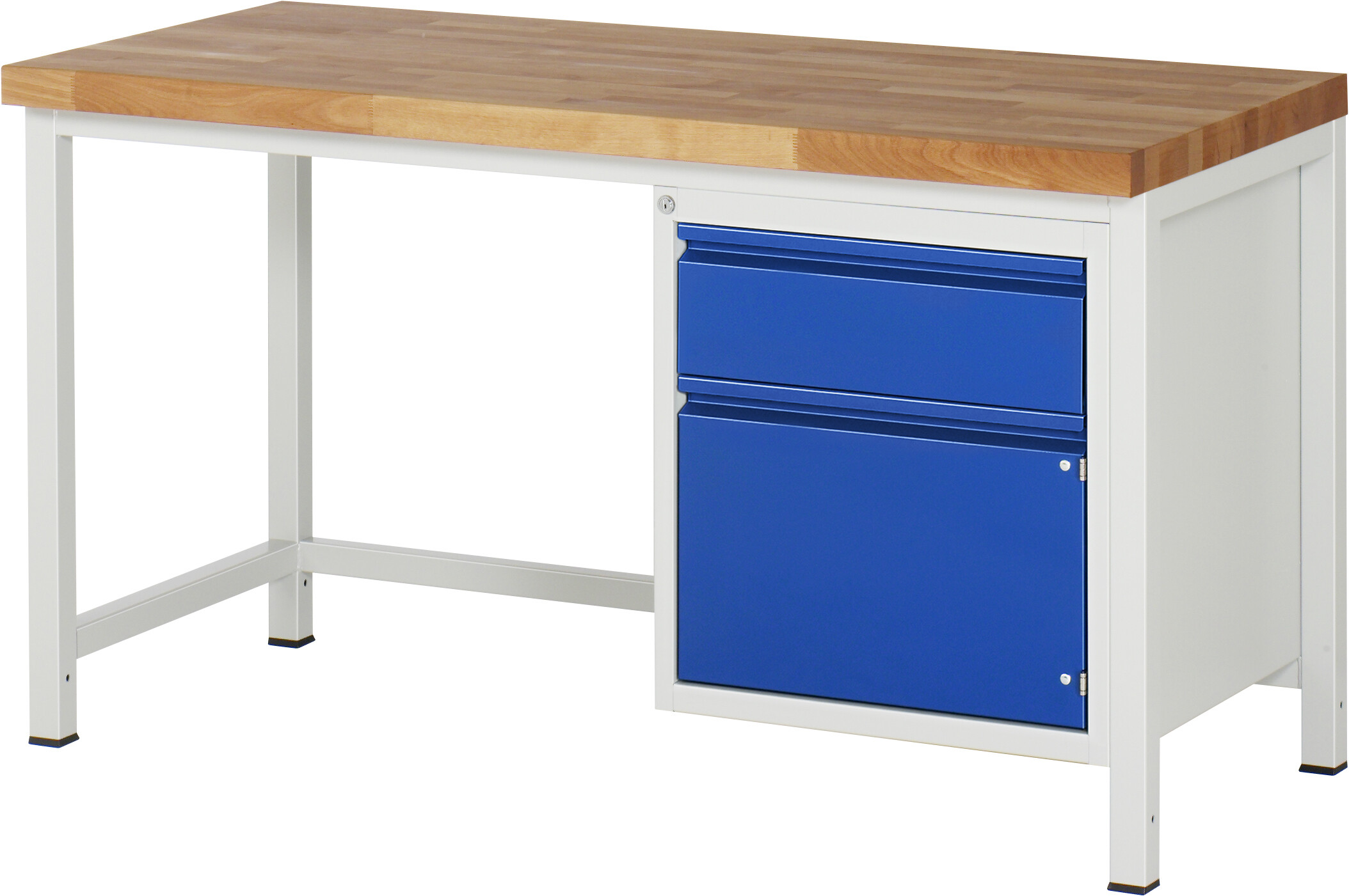 Werkbank Serie 8000 - Modell 8152 BASIC B1500 x T700 x H840-1040 mm Buche-Massiv-Arbeitsplatte 40 mm. Gestell Vierkantrohr. Werkbank mit einstellbarer Arbeitshöhe. 1 x Schublade auf rollengelagerten Auszugsschienen (1xH180 mm). 1 x Flügeltür (H360 mm). Pulverbeschichtung Flächenlast max. 1.250 kg Lieferung komplett montiert Qualitätsgarantie 5 Jahre Made in Germany
