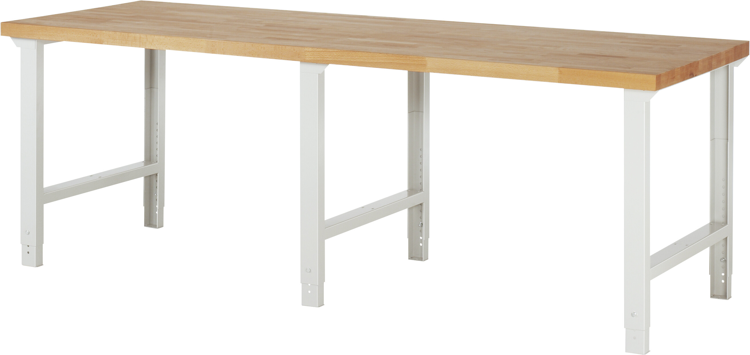 Werkbank Serie 7000 - Modell 7000 B2500 x T900 x H790-1140 mm Buche-Massiv-Platte 40 mm. Werkbank mit einstellbarer Arbeitshöhe. Pulverbeschichtung Flächenlast max. 750 kg Lieferung komplett montiert Qualitätsgarantie 5 Jahre Made in Germany