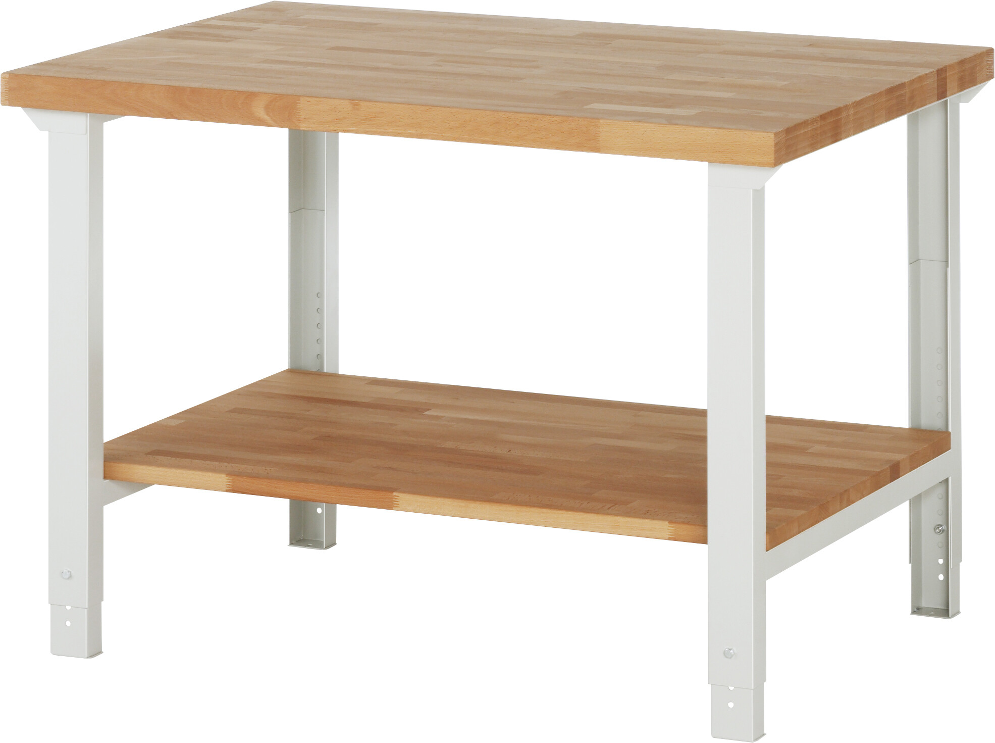Werkbank Serie 7000 - Modell 7000 B1250 x T900 x H790-1140 mm Buche-Massiv-Platte 40 mm. Werkbank mit Buche-Massiv-Ablageboden (T 745 mm) und einstellbarer Arbeitshöhe. Pulverbeschichtung Flächenlast max. 750 kg Lieferung komplett montiert Qualitätsgarantie 5 Jahre Made in Germany