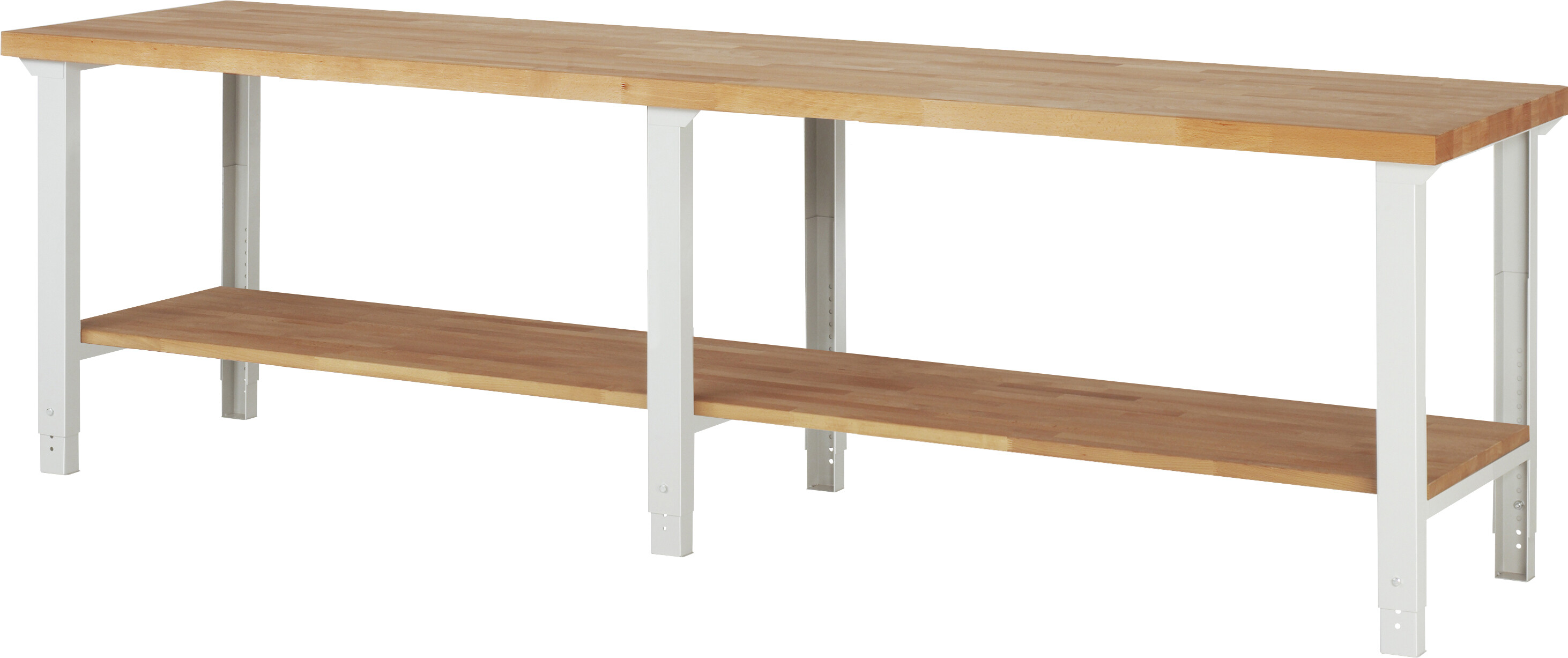 Werkbank Serie 7000 - Modell 7000 B3000 x T700 x H790-1140 mm Buche-Massiv-Platte 40 mm. Werkbank mit Buche-Massiv-Ablageboden (T 545 mm) und einstellbarer Arbeitshöhe. Pulverbeschichtung Flächenlast max. 750 kg Lieferung komplett montiert Qualitätsgarantie 5 Jahre Made in Germany