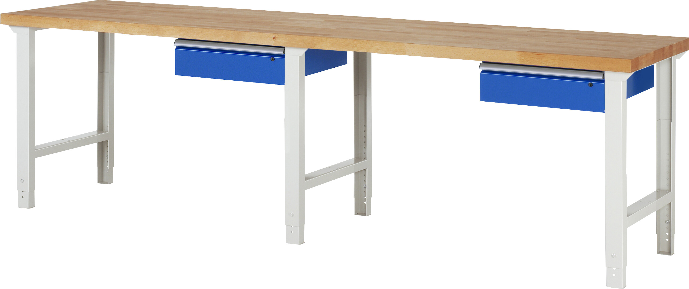 Werkbank Serie 7000 - Modell 7001 B3000 x T700 x H790-1140 mm Buche-Massiv-Platte 40 mm. Werkbank mit einstellbarer Arbeitshöhe. 1 x Schublade (1xH150 mm). Pulverbeschichtung Flächenlast max. 750 kg Lieferung komplett montiert Qualitätsgarantie 5 Jahre Made in Germany