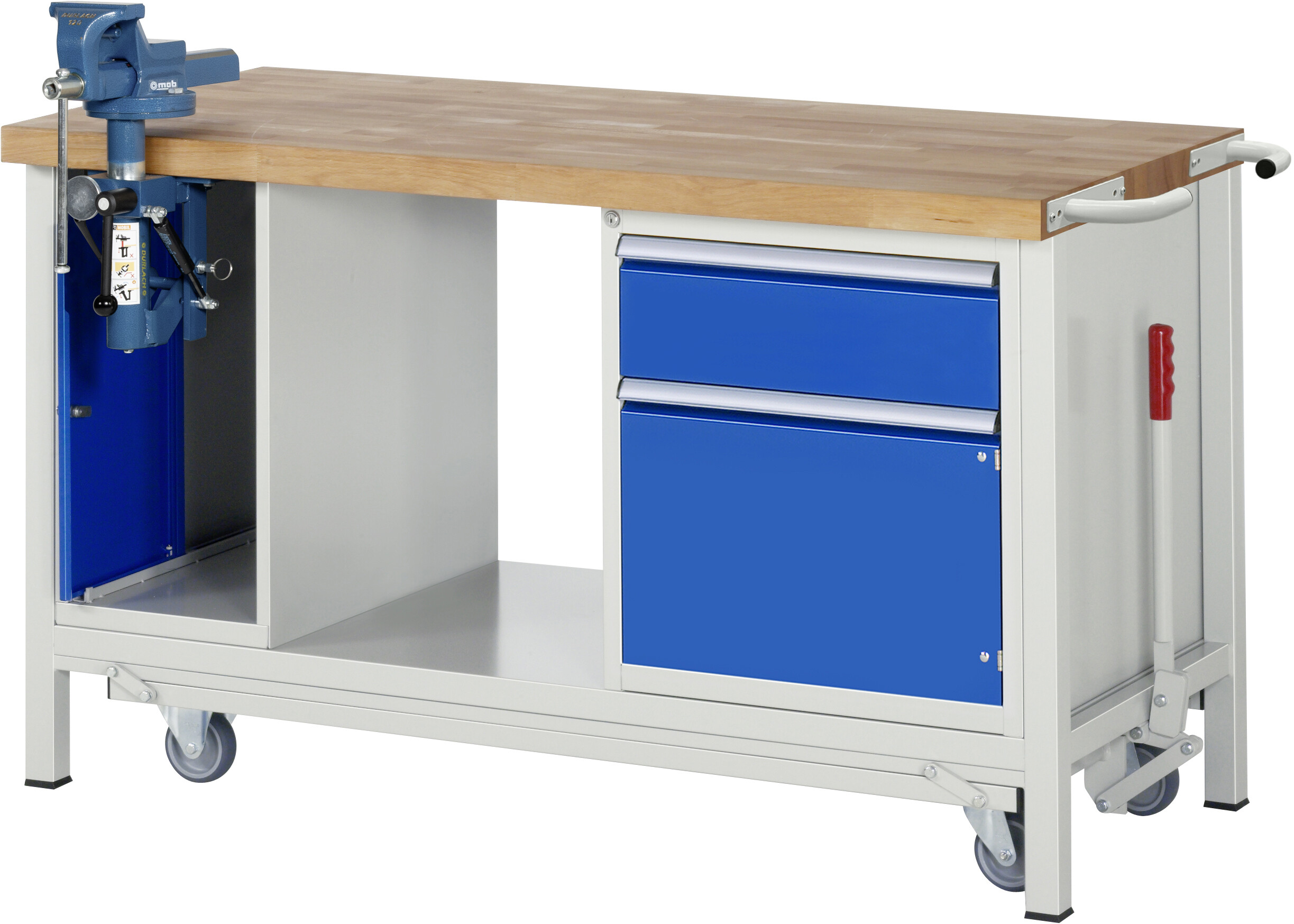 Absenkbare Werkbank 8000 - Modell 8181 B1500 x T700 x H880 mm Buche-Massiv-Arbeitsplatte 40 mm. Gestell Vierkantrohr mit absenkbarem Fahrgestell. 8 x Schublade (4xH120, 4xH150 mm). Pulverbeschichtung Flächenlast max. 1.250 kg (bzw. max. 450 kg bei ausgefahrenem Fahrgestell) Lieferung komplett montiert Qualitätsgarantie 5 Jahre Made in Germany