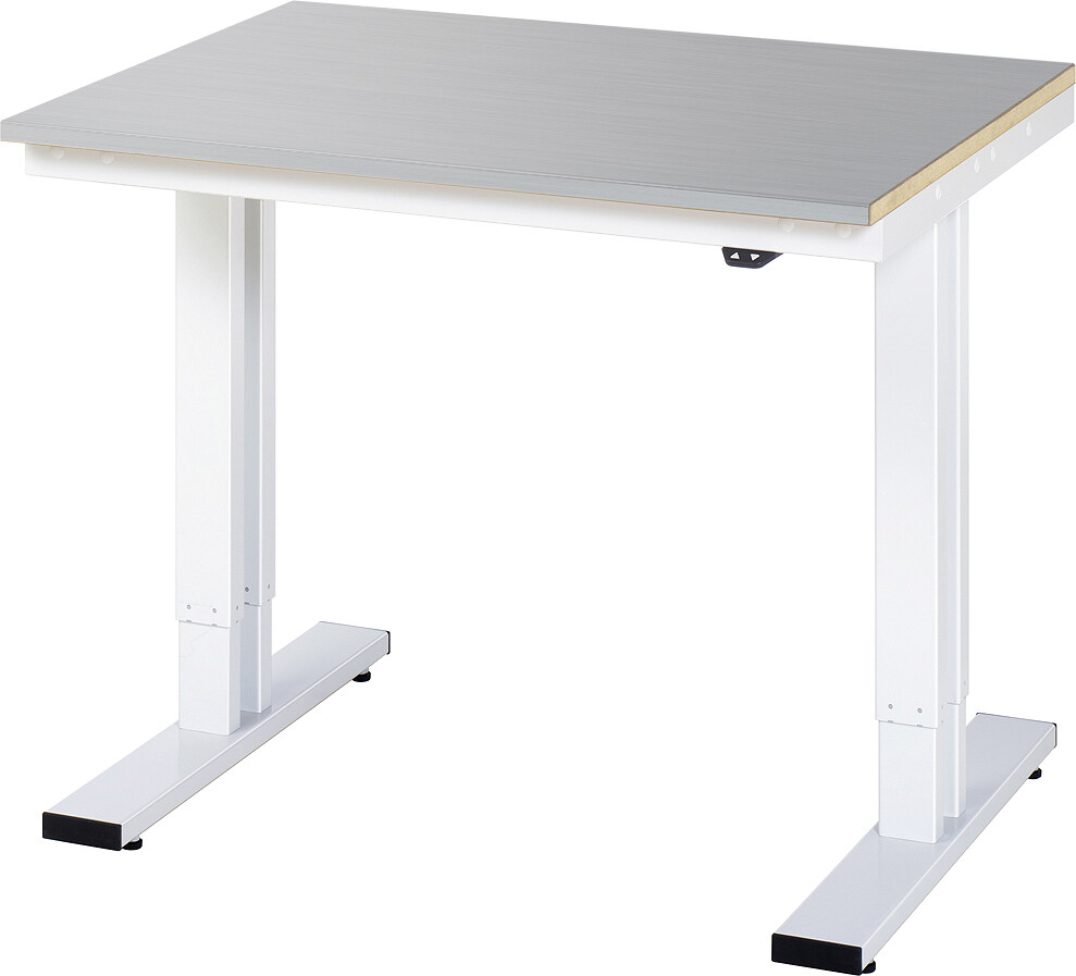 Werktisch Serie adlatus 300 B1000 x T800 x H720-1120 mm Platte mit Edelstahlblechbelag 25 mm. Elektrische Verstellung mittels den 2 Doppelhubsäulen durch integrierten Linearantrieb. Pulverbeschichtung Flächenlast max. 300 kg Lieferung komplett montiert Qualitätsgarantie 5 Jahre Made in Germany