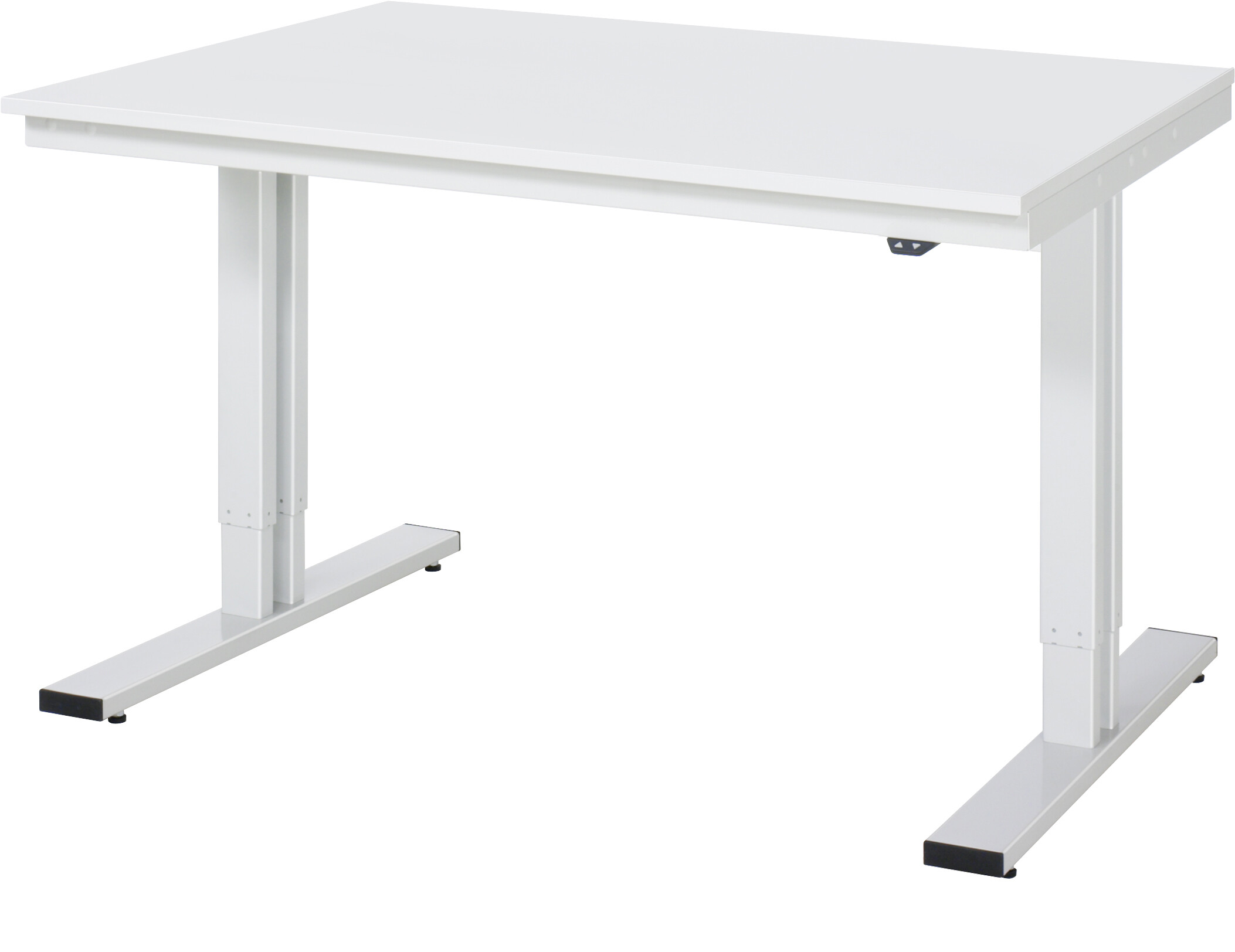 Werktisch Serie adlatus 300 B1250 x T1000 x H720-1120 mm EGB-Melaminharzbeschichtete-Platte 28 mm. Elektrische Verstellung mittels den 2 Doppelhubsäulen durch integrierten Linearantrieb Pulverbeschichtung Flächenlast max. 300 kg Lieferung komplett montiert Qualitätsgarantie 5 Jahre Made in Germany