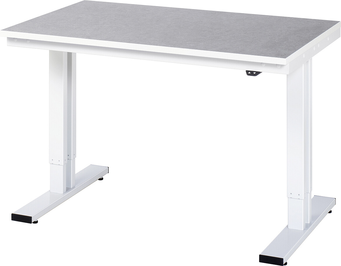 Werktisch Serie adlatus 300 B1250 x T800 x H720-1120 mm Platte mit Linoleumbelag 25 mm. Elektrische Verstellung mittels den 2 Doppelhubsäulen durch integrierten Linearantrieb. Pulverbeschichtung Flächenlast max. 300 kg Lieferung komplett montiert Qualitätsgarantie 5 Jahre Made in Germany