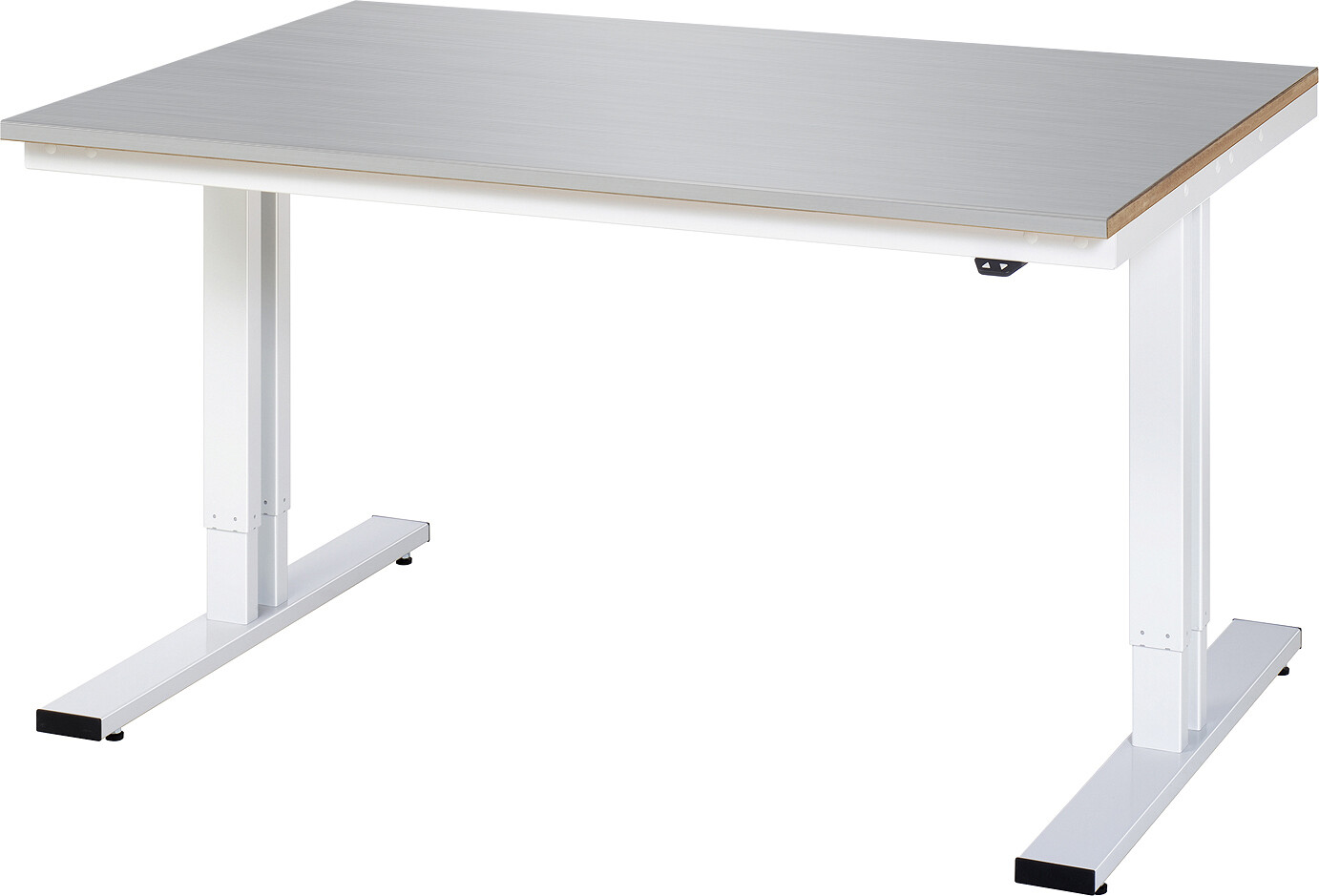 Werktisch Serie adlatus 300 B1500 x T1000 x H720-1120 mm Platte mit Edelstahlblechbelag 25 mm. Elektrische Verstellung mittels den 2 Doppelhubsäulen durch integrierten Linearantrieb. Pulverbeschichtung Flächenlast max. 300 kg Lieferung komplett montiert Qualitätsgarantie 5 Jahre Made in Germany