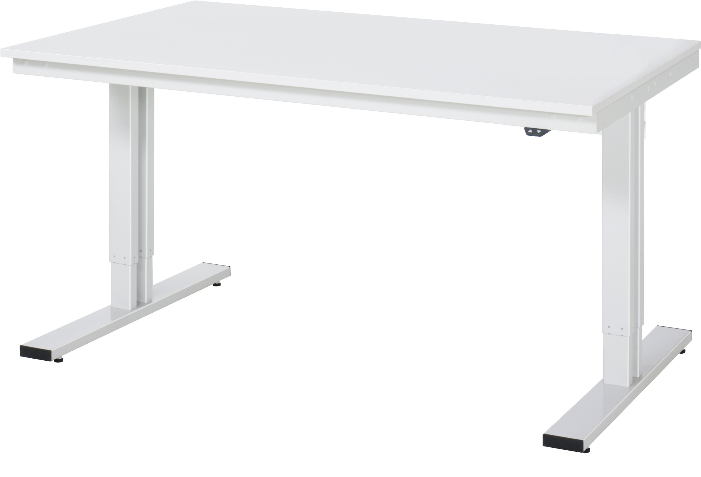 Werktisch Serie adlatus 300 B1500 x T1000 x H720-1120 mm EGB-Melaminharzbeschichtete-Platte 28 mm. Elektrische Verstellung mittels den 2 Doppelhubsäulen durch integrierten Linearantrieb Pulverbeschichtung Flächenlast max. 300 kg Lieferung komplett montiert Qualitätsgarantie 5 Jahre Made in Germany
